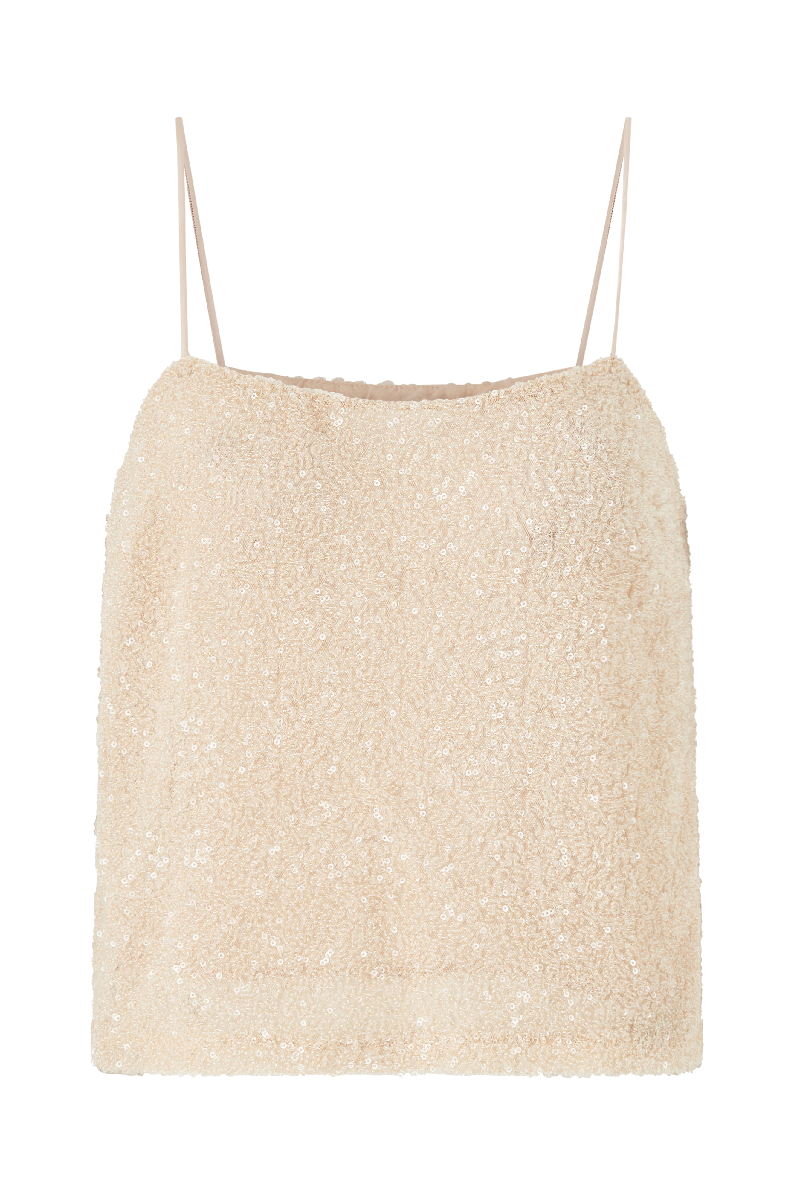 • Ærmeløs top med skinnende pailletter• Vævet for• Spaghettistrop