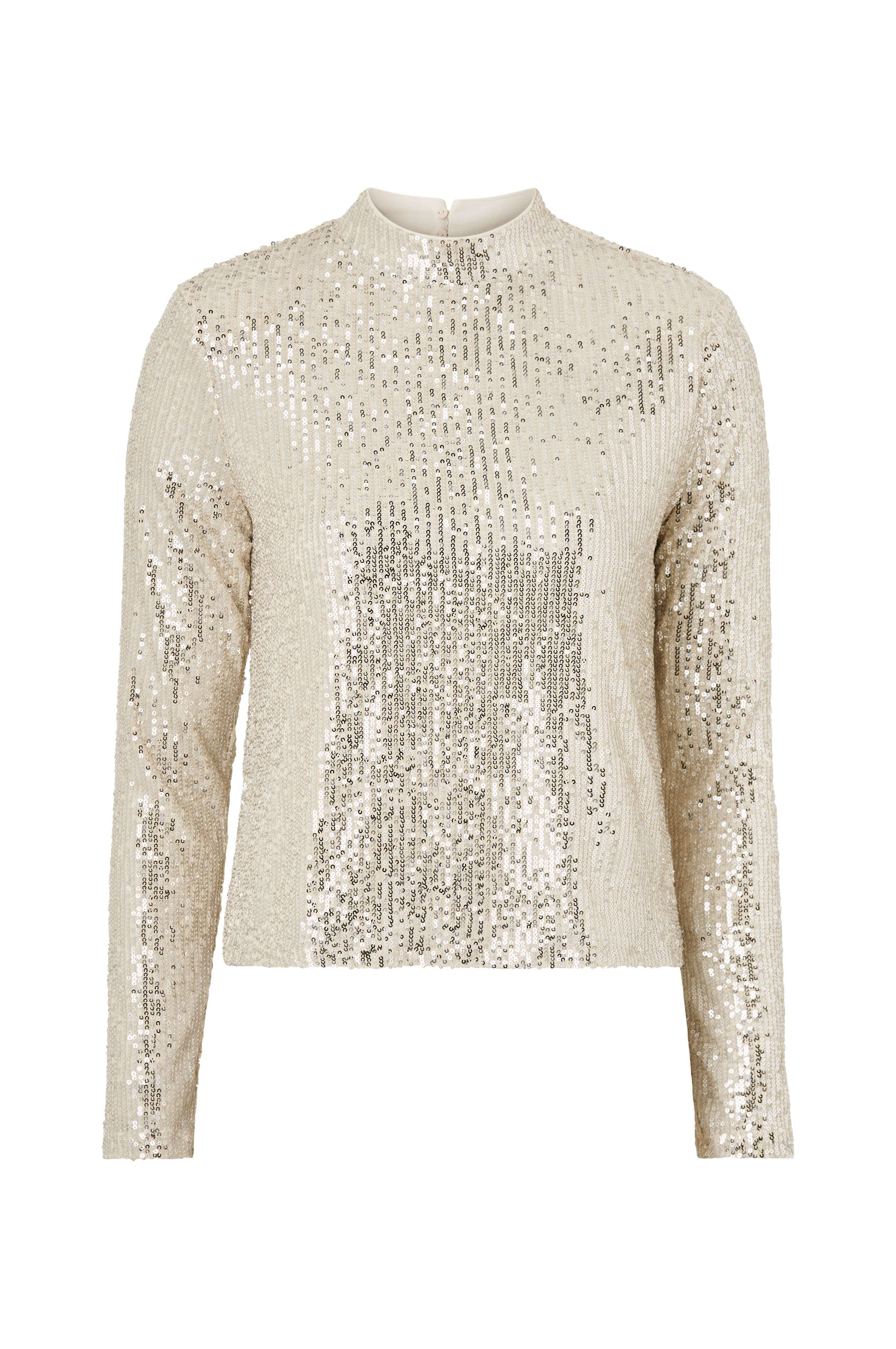 • Top med pailleter• Høj udskæring• Åbning i ryggen• Skulderpuder