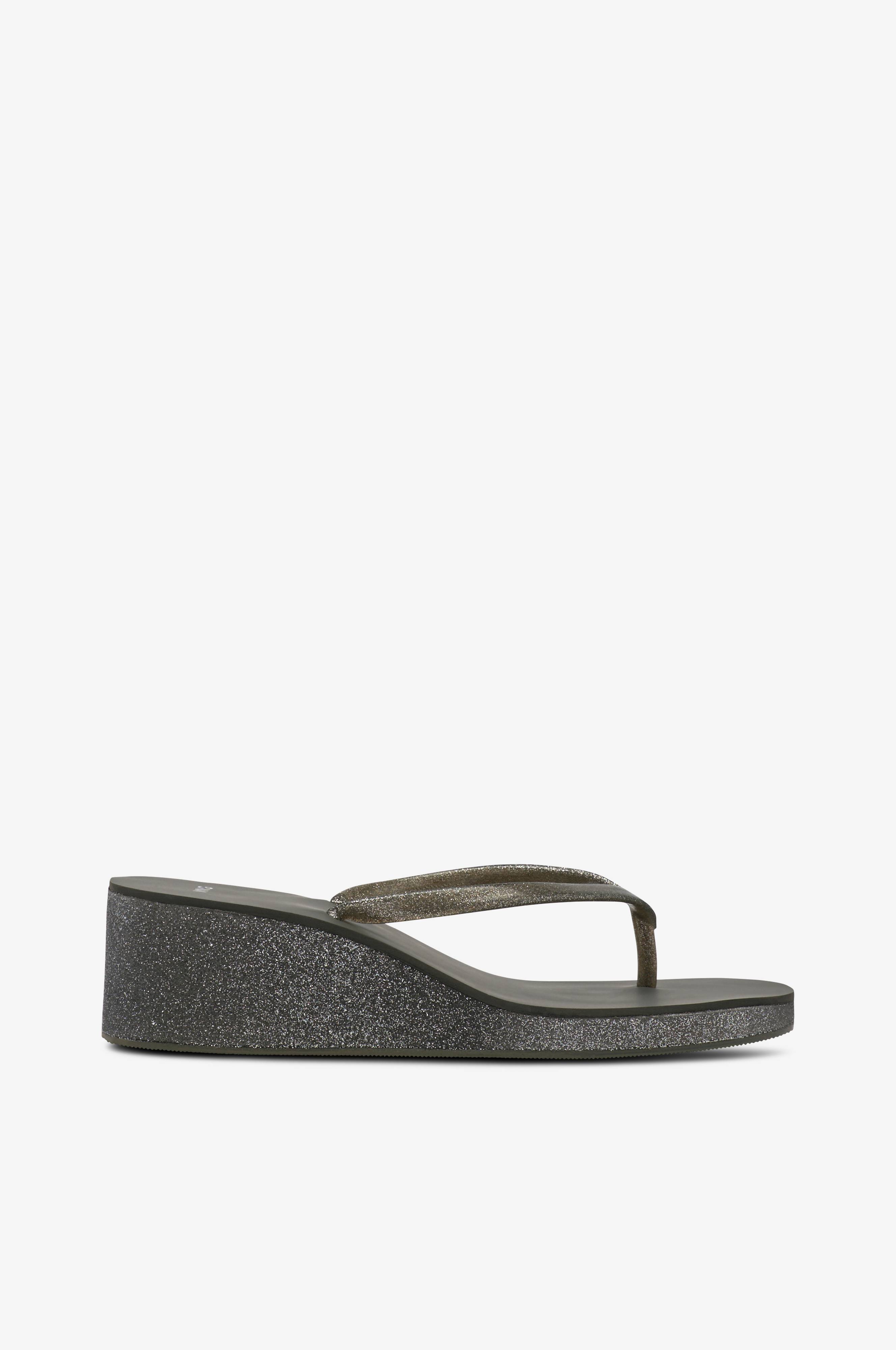 • Sandal i syntetisk materiale• Glitrende tårem• Glitrende wedgehæl