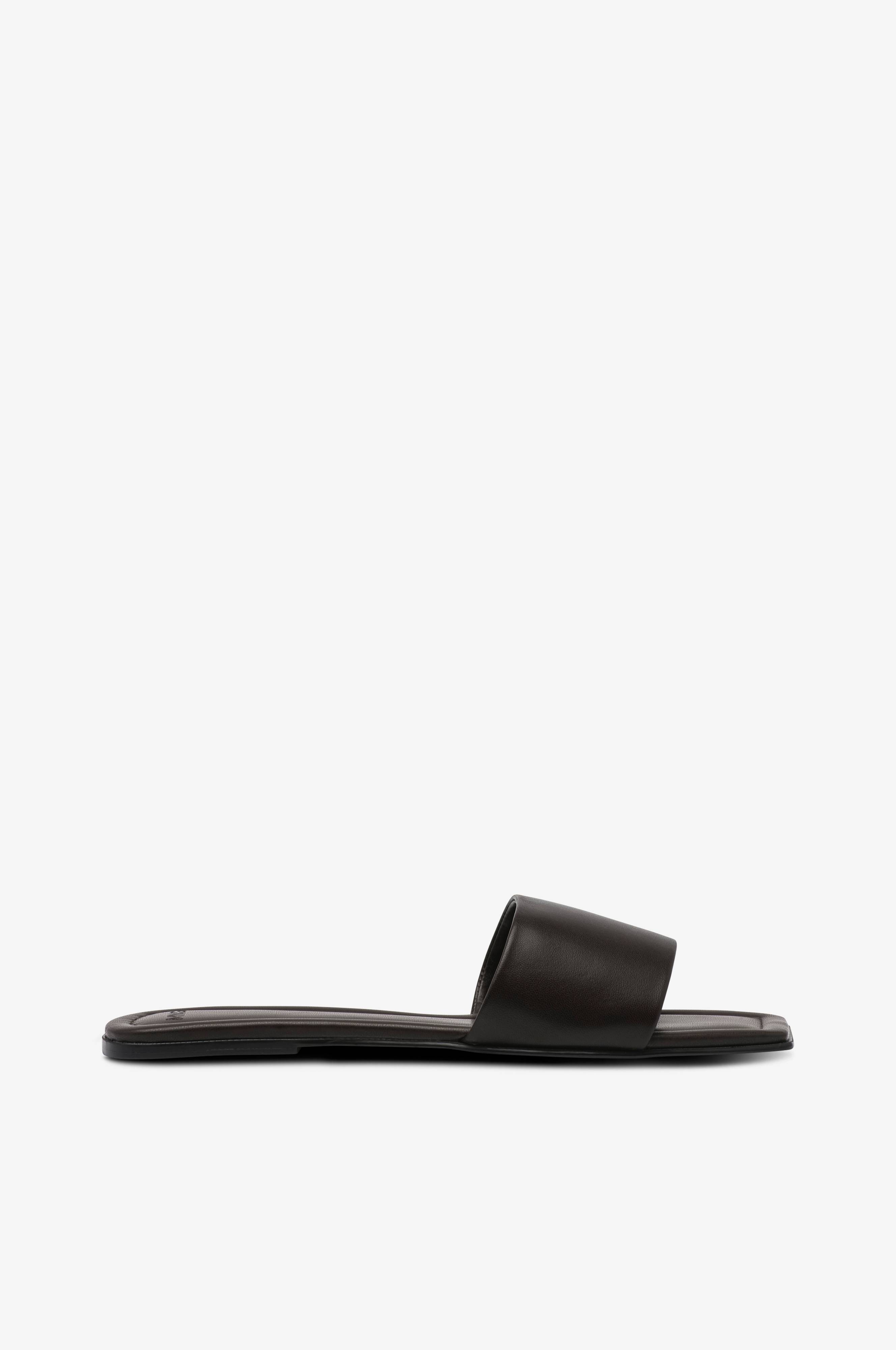 • Flade sandaler• Bred rem i læder• Firkantet snude