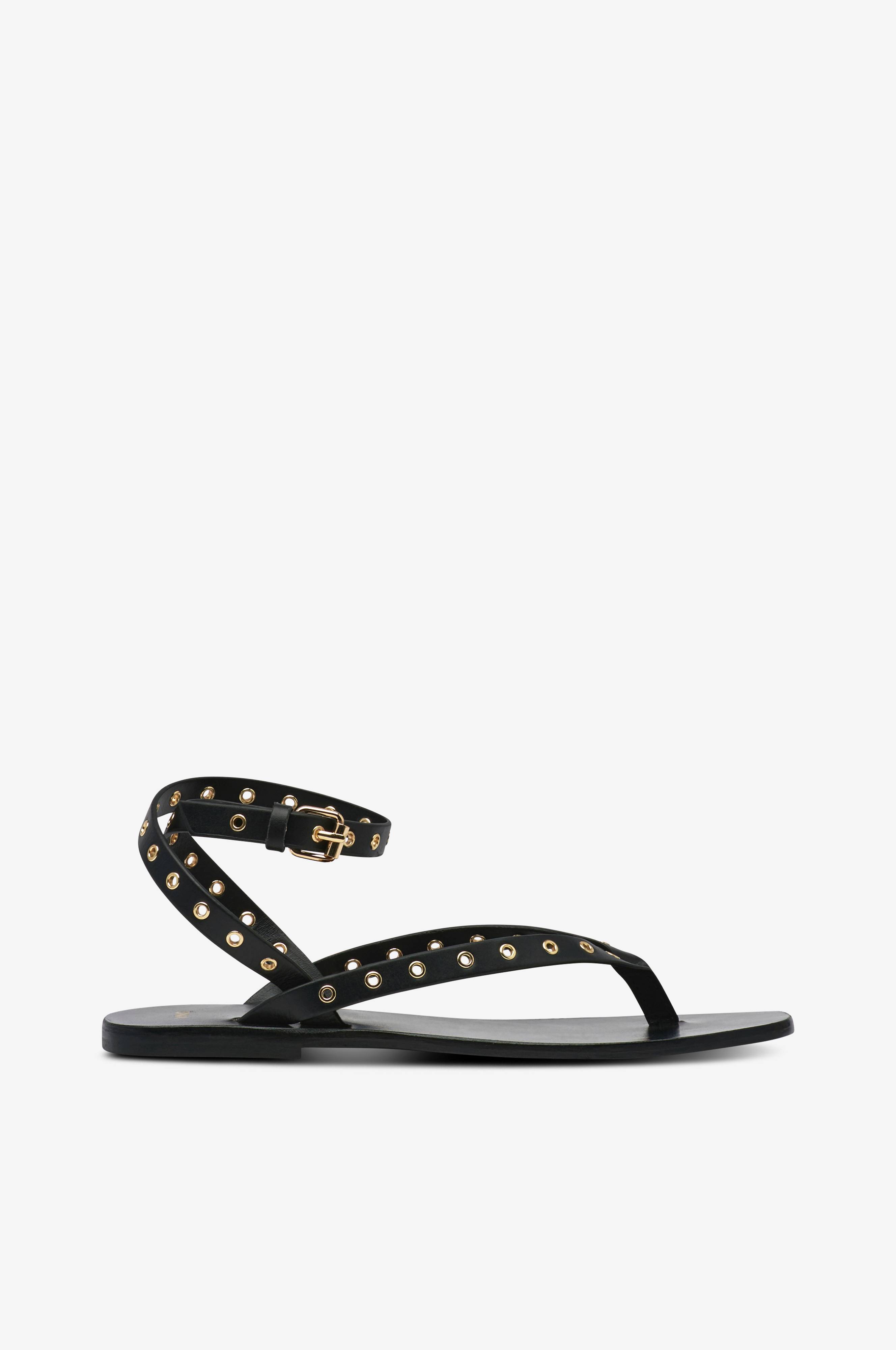 • Sandaler i læder med guldfarvede snørehuller• Firkantet tåform• Tårem• Justérbar ankelkæde med guldfarvet metallukning