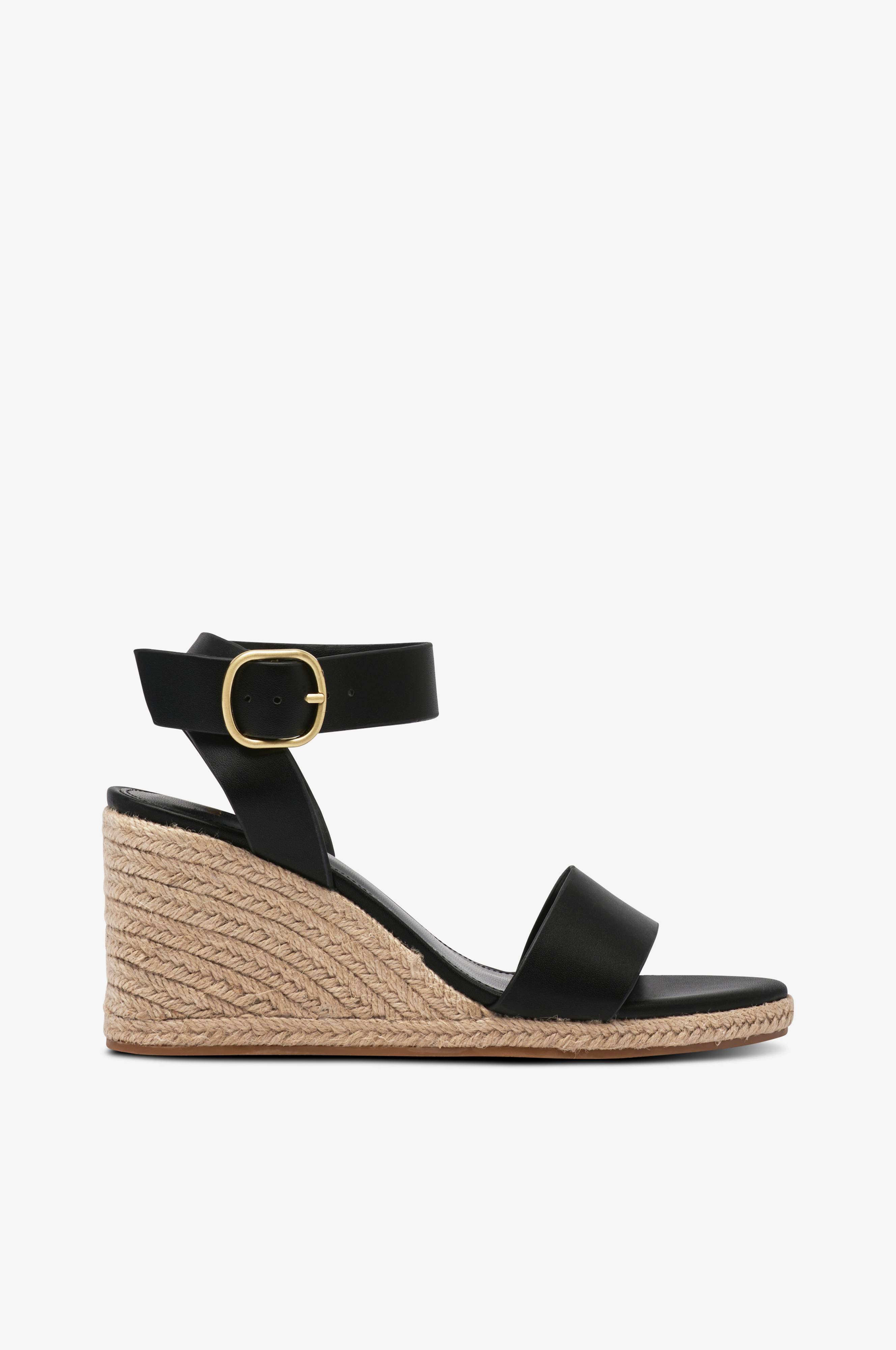 • Remme i imiteret læder• Guldfarvet spænde• Rebbeklædt wedgehæl• Hælhøjde: 8 cm