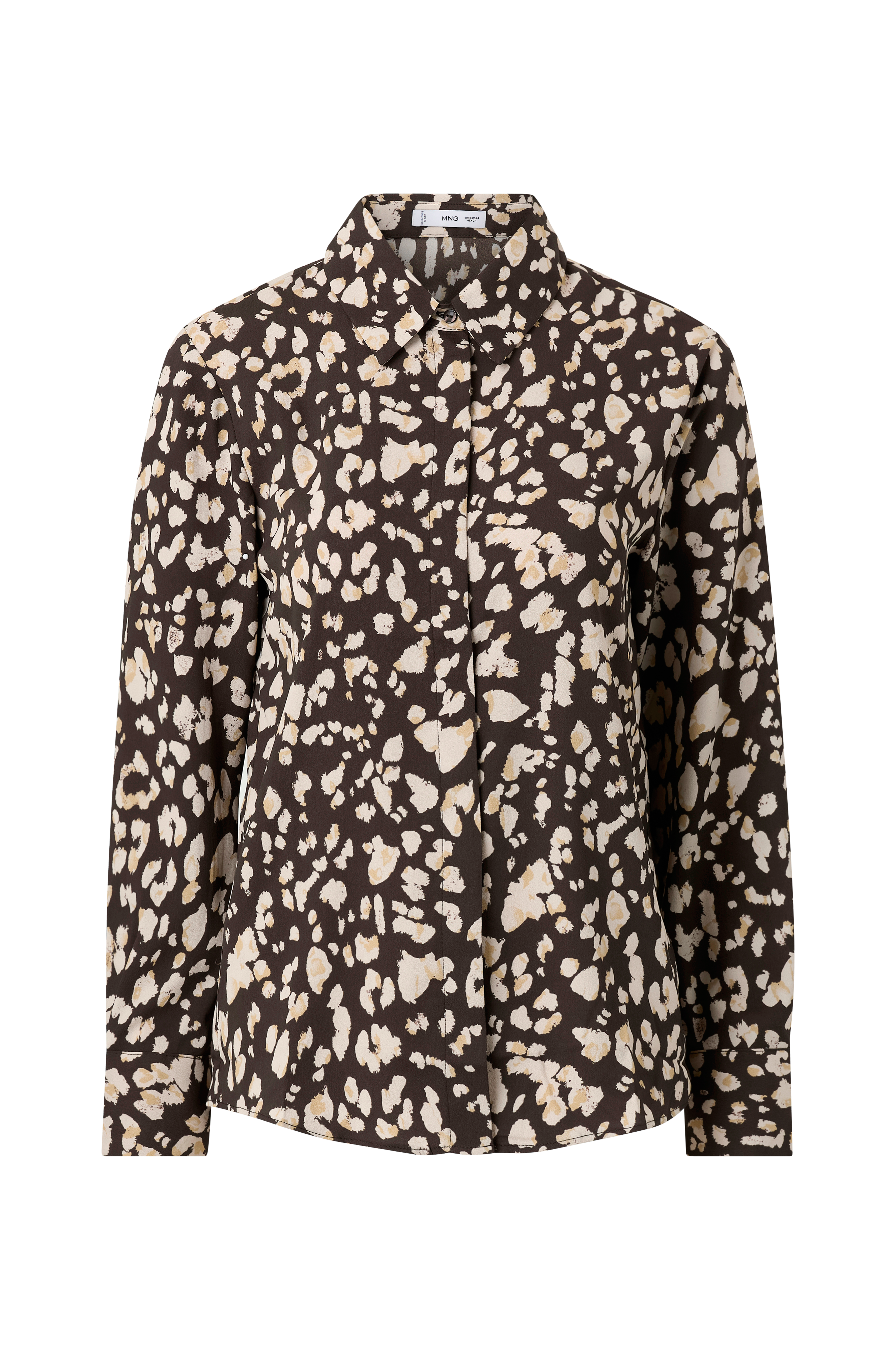 • Mønstret skjorte med skjult knaplukning foran• Lange ærmer med manchetter• Afrundet søm
