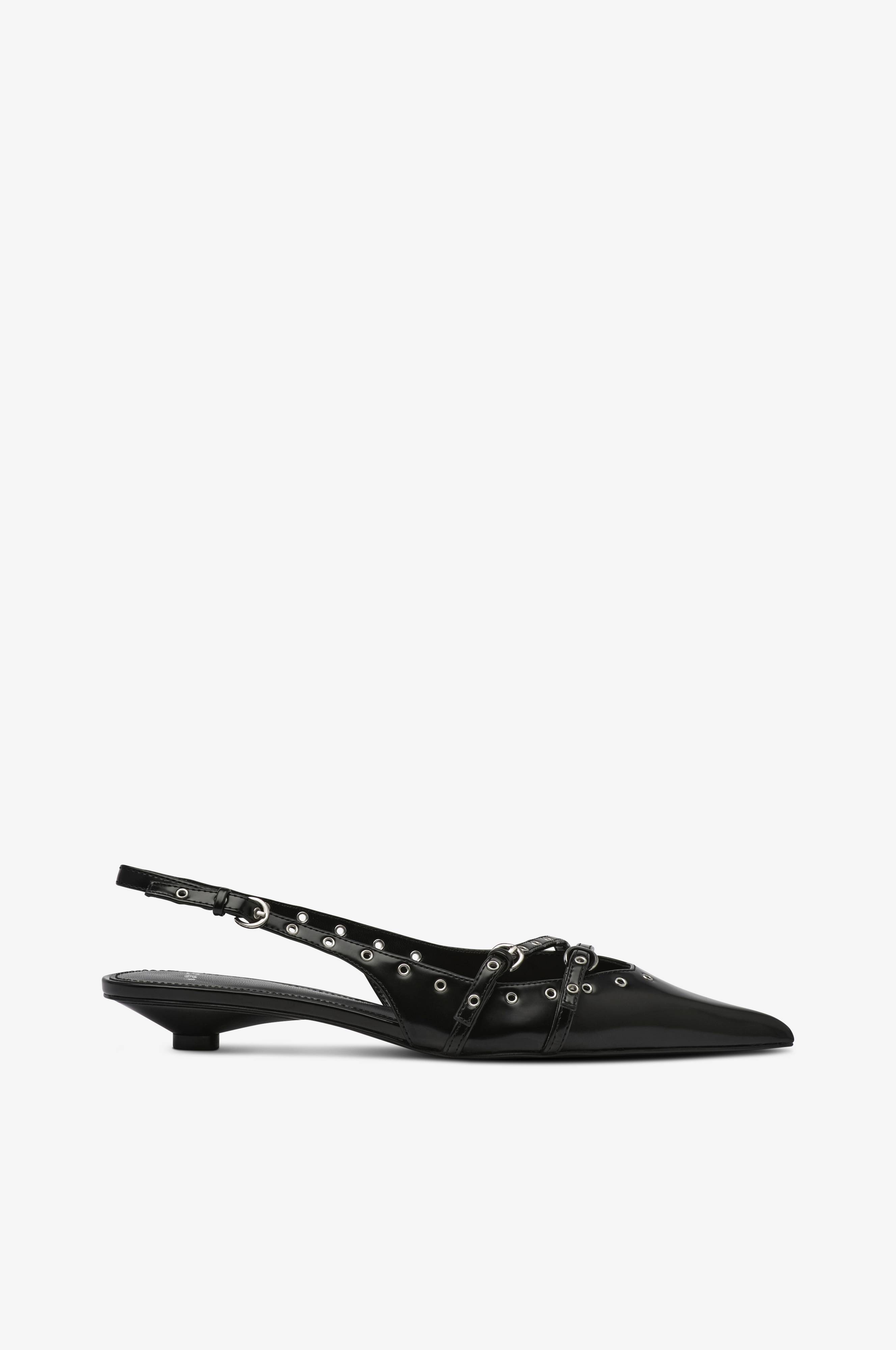 • Slingback i kunststof med spids tåform• Stemplede detaljer• Kitten hæl• Justérbar hælrem med metallukning