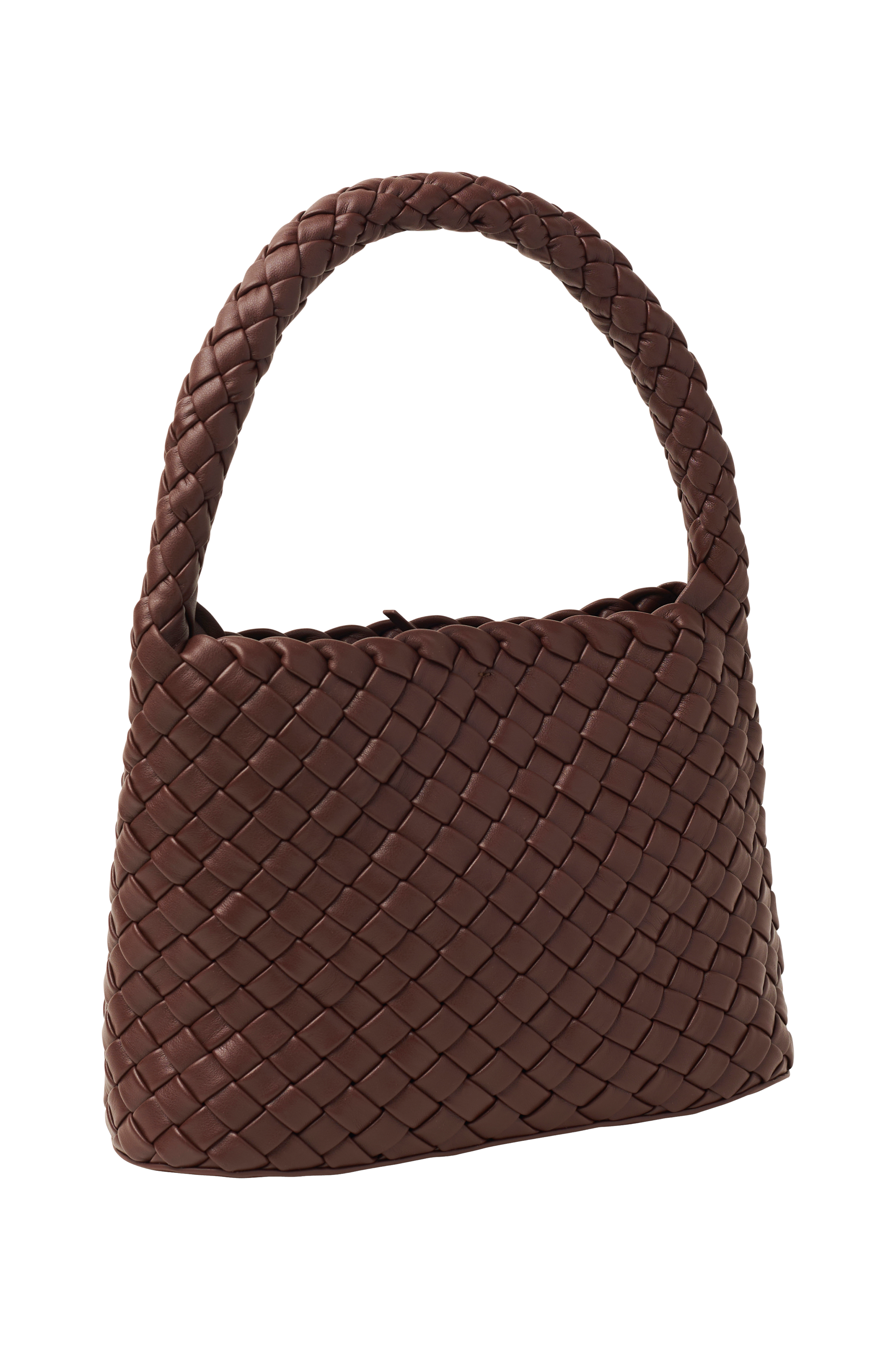 • Blød, flettet model i imiteret læder• Stoffor med træksnørre• Mål: B 31 x H 21 x D 11 cm