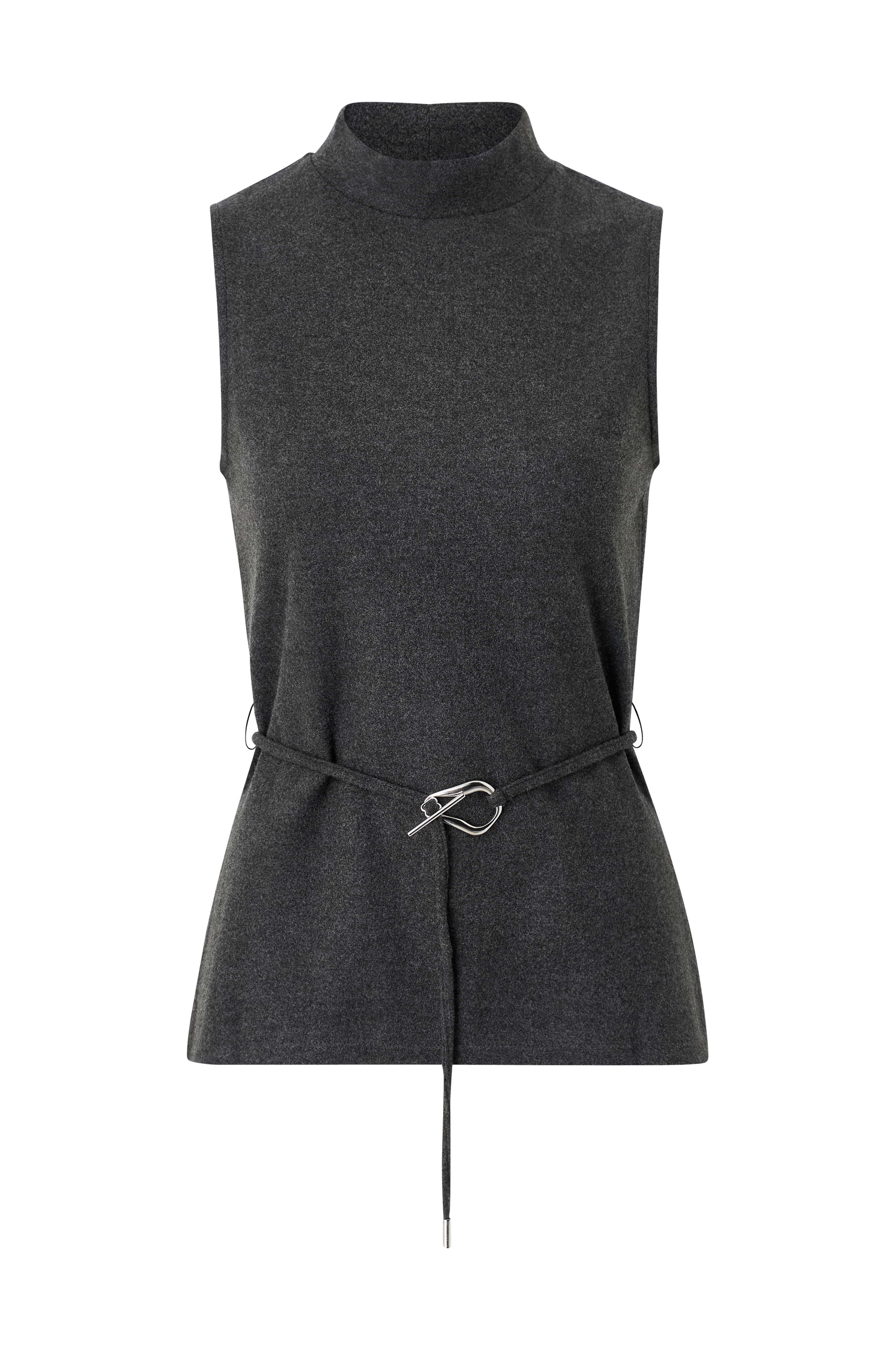 • Ærmeløs top• Opretstående krave• Bælte ved taljen• Figursyet pasform