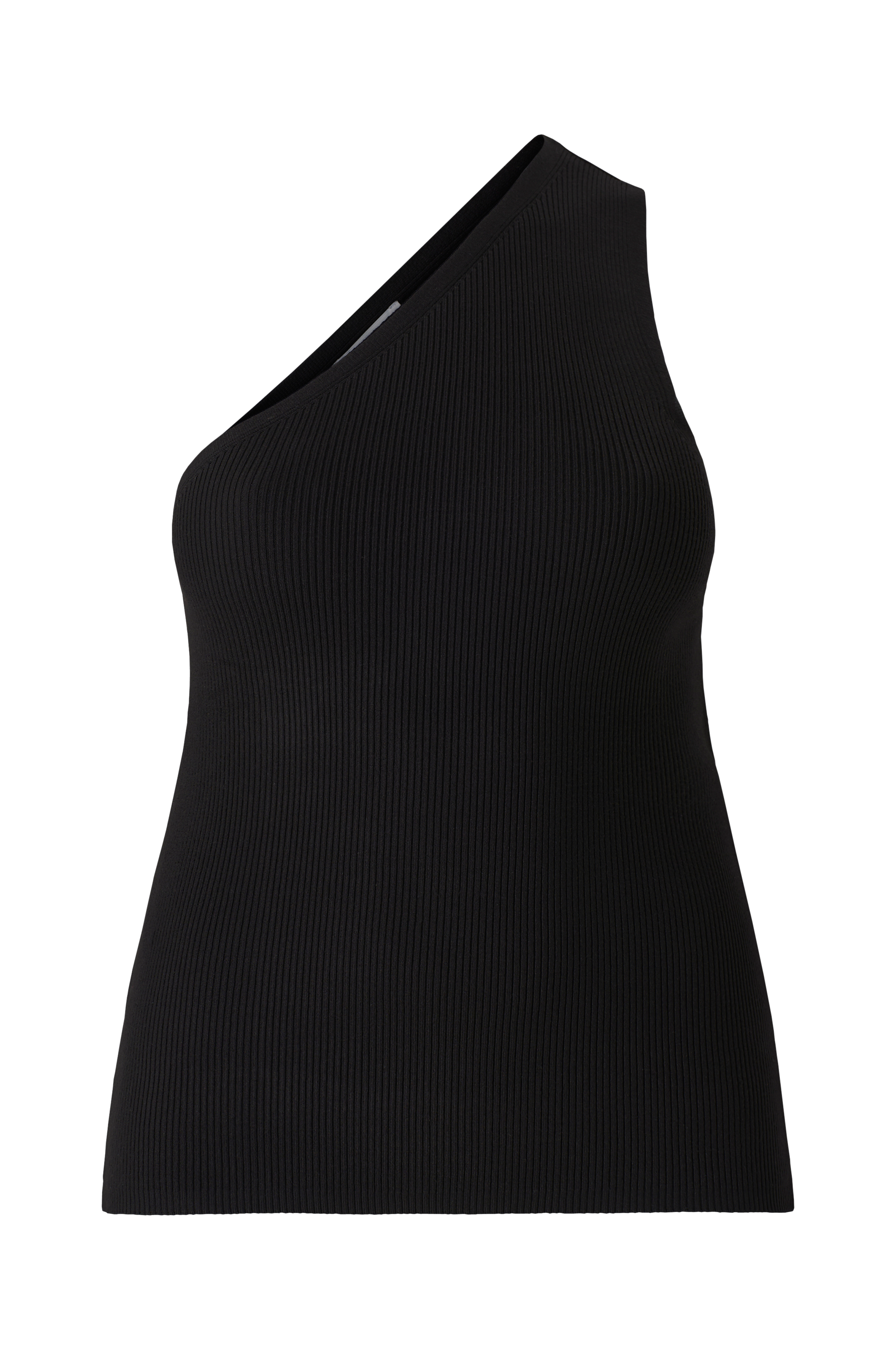 • Ribstrikket model med asymmetrisk øvre kant og en skulderstrop