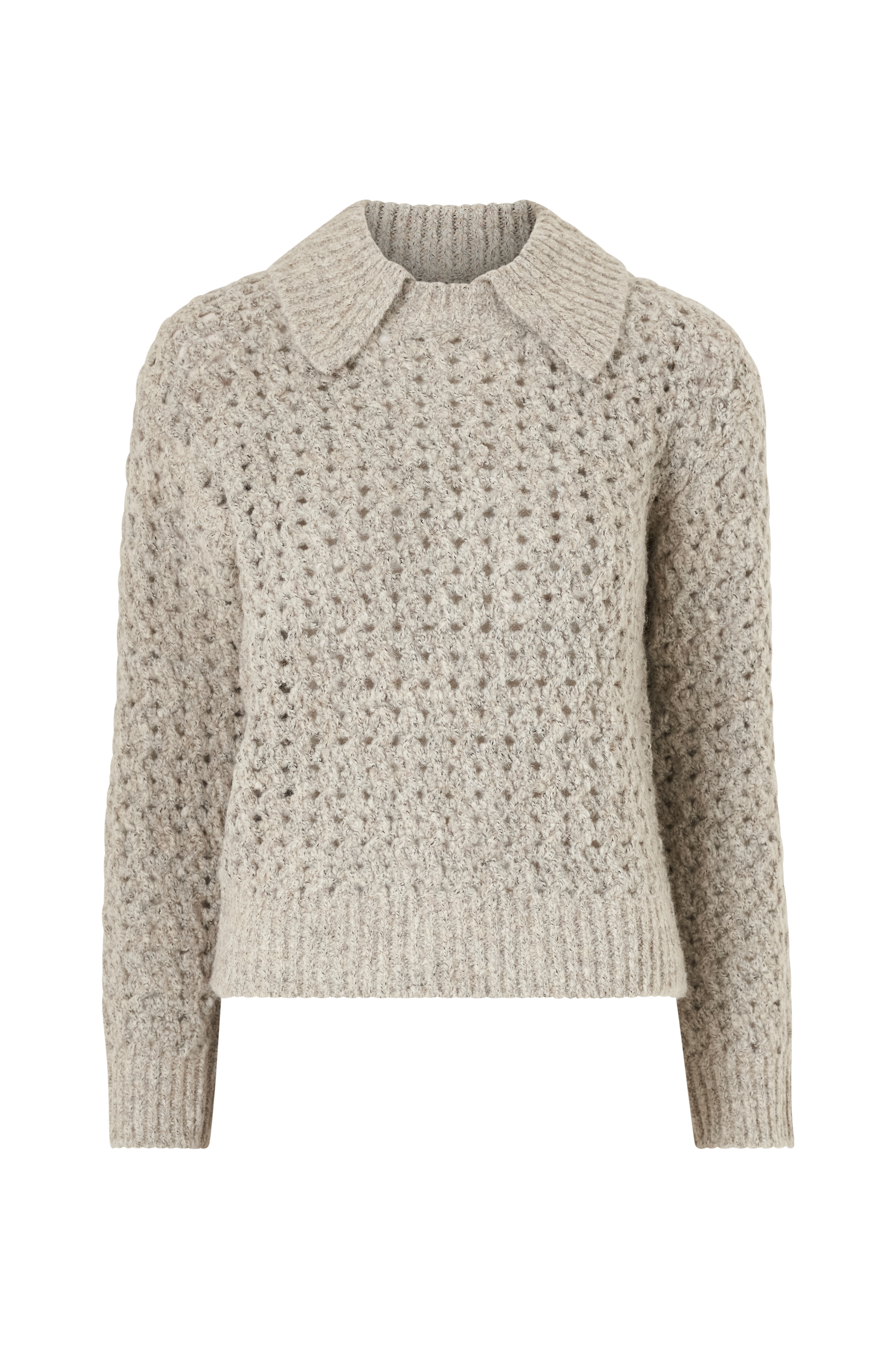 • Langærmet trøje i grov polyesterblanding med en strikket detalje• Ribstrikket pikékrave• Lige, firkantet pasform• Ribstrik nederst og ved manchetterne