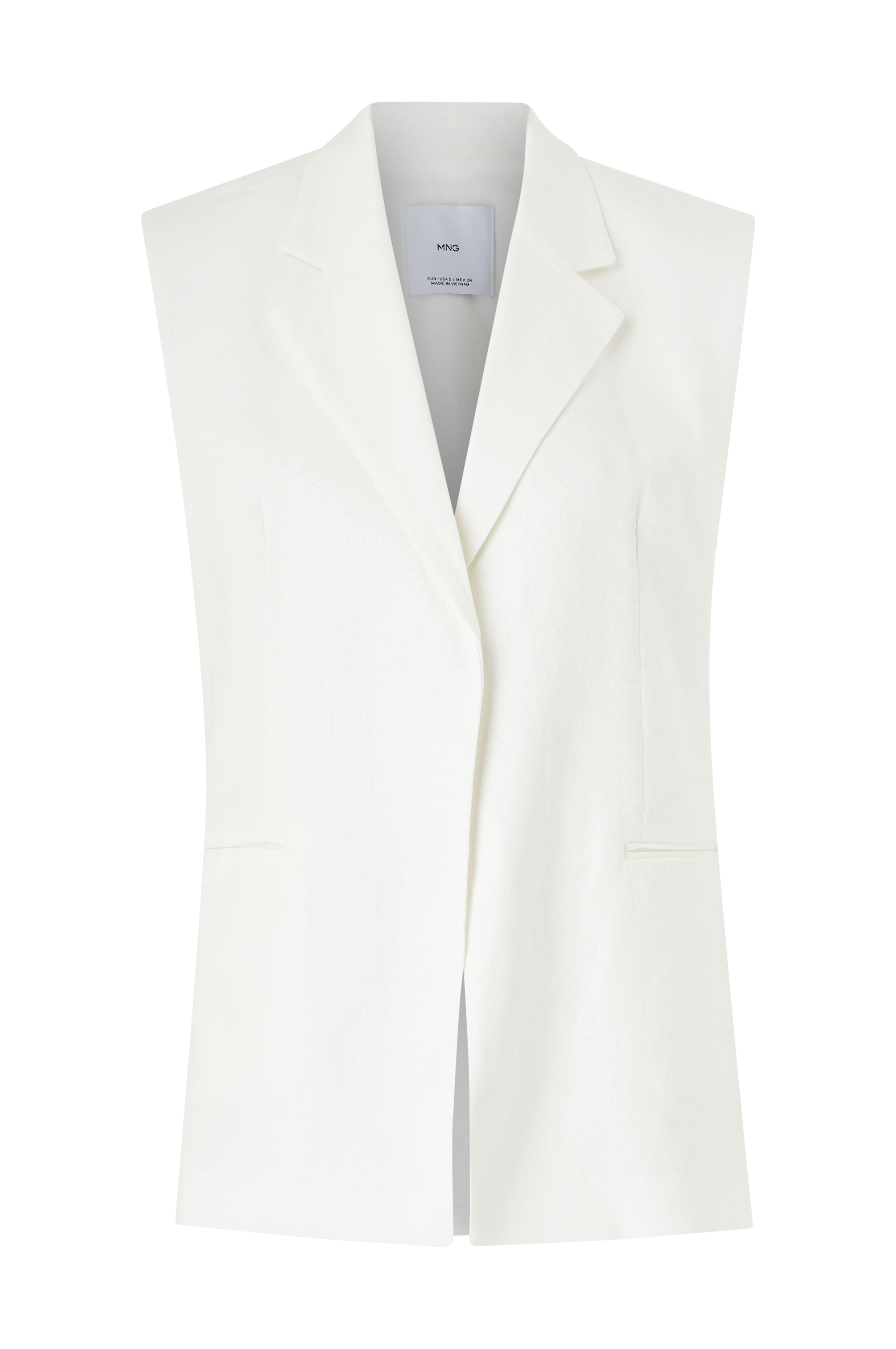 • Foret vest i bomuld med krave• To paspolerede lommer foran• Skjult knap ved taljen• Justérbart spænde bagpå