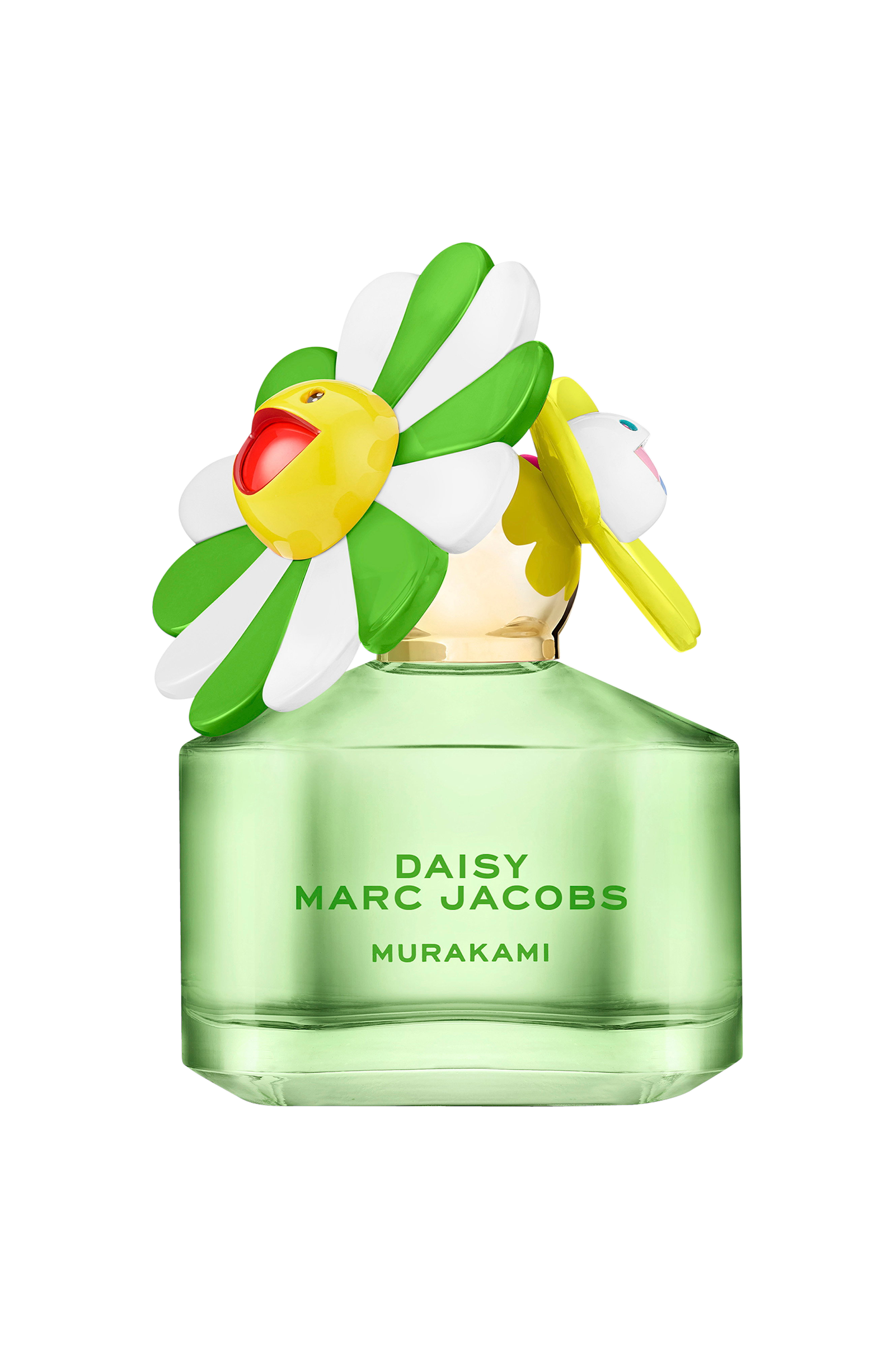 Den strålende grønne flaske er toppet med en slående hætte, hvor to ikoniske blomster og kunstneriske visioner mødes: Murakamis livlige signaturblomst og Marc Jacobs' klassiske marguerit. Sammen danner de en harmonisk eksplosion af farver, glæde og fantasi - et drømmeagtigt udtryk, der føles både tidløst og elektrificerende moderne.