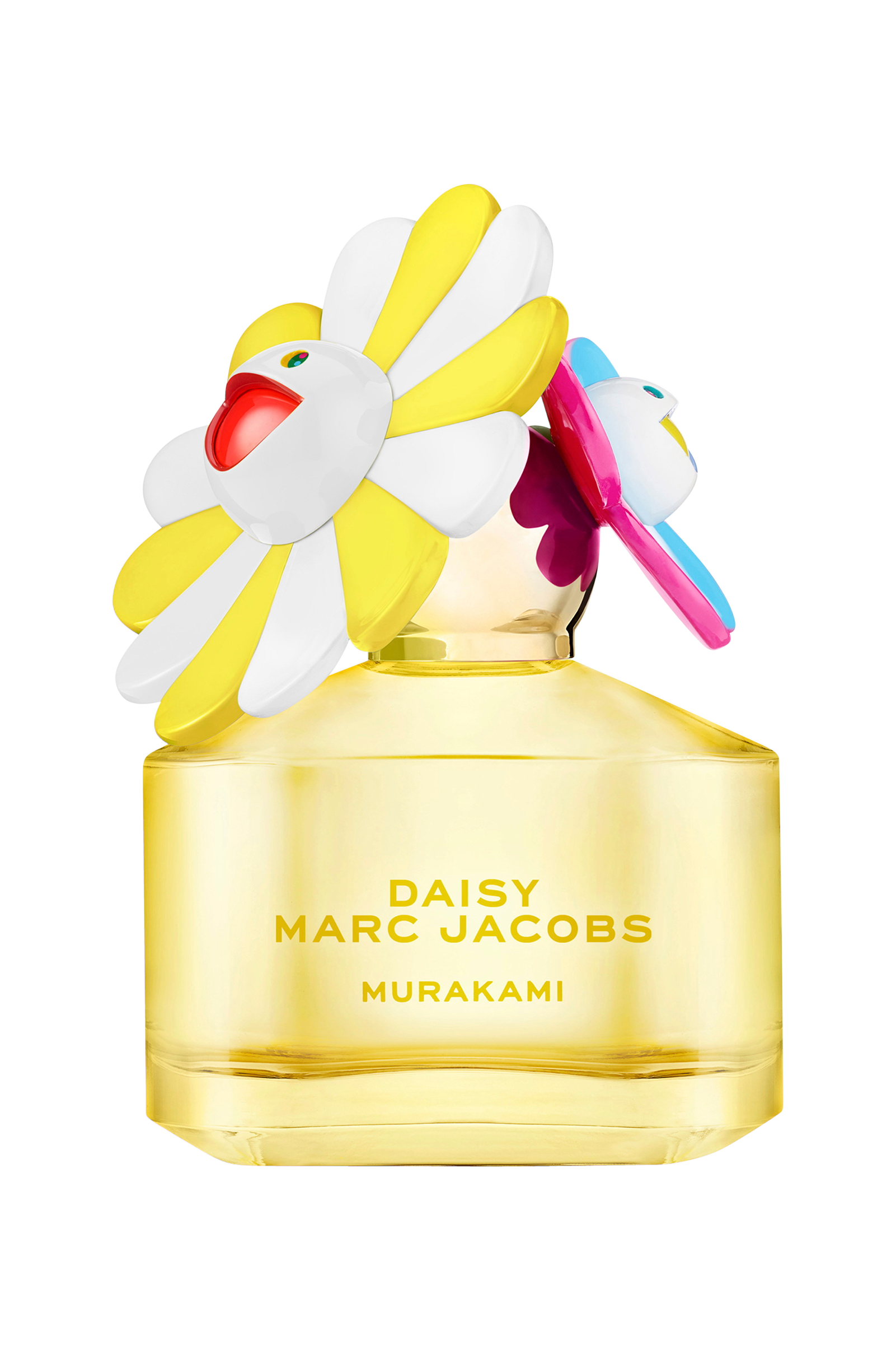 Den strålende gule flaske er toppet med en slående hætte, hvor to ikoniske blomster og kunstneriske visioner mødes - Murakamis livlige signaturblomst og Marc Jacobs' klassiske Daisy. Sammen danner de en harmonisk eksplosion af farver, glæde og fantasi - et drømmeagtigt udtryk, der føles både tidløst og elektrificerende moderne.