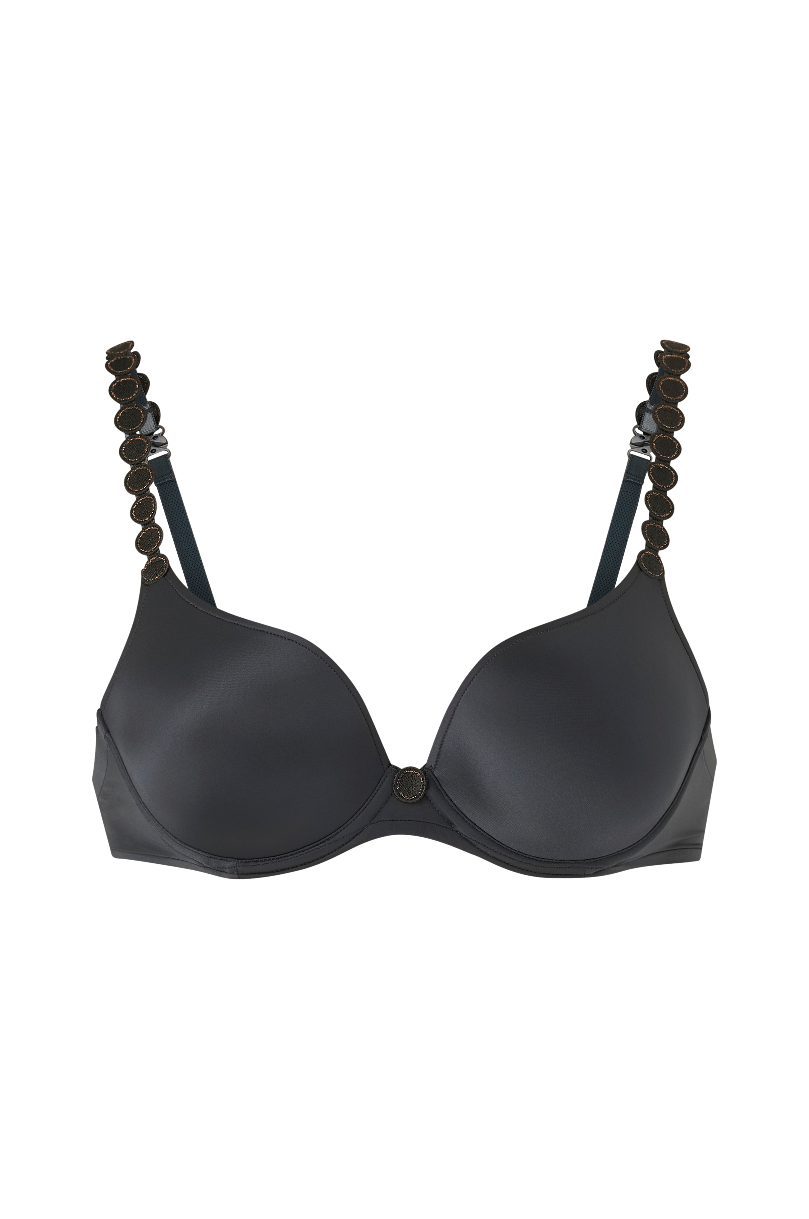 • Formede, let forede skåle• Dekorative skulderstropper foran med justering bagpå• Hægtelukning i ryggen