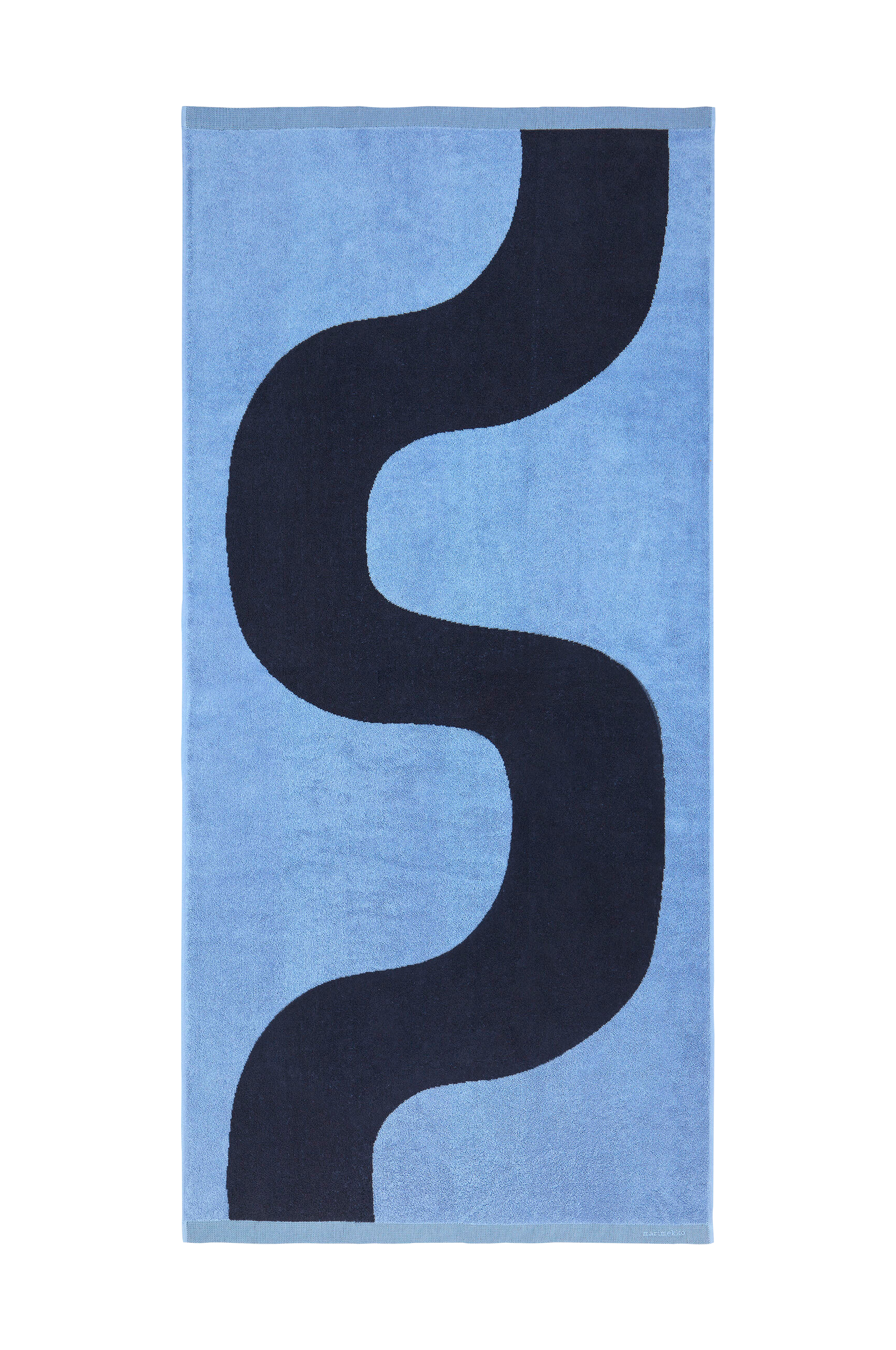 Badehåndklæde i bomuldsfrotté med Seireeni-mønsteret (sirene). Seireeni stof fra Marimekko har et bølgende grafisk mønster i tre farver. Maija Isola, der står bag designet, fik inspirationen til bevægelsesmønstret i vandet, da hun var på rejse i Grækenland i begyndelsen af 1960'erne. Bomuldsstoffet, der blev designet i 1964, kan bruges til pudebetræk, gardiner, forklæder og duge - kun din fantasi sætter grænser! Navnet Seireeni kommer fra sirenerne, et væsen i græsk mytologi, der tiltrak sømænd ved at synge fortryllende sange til dem.