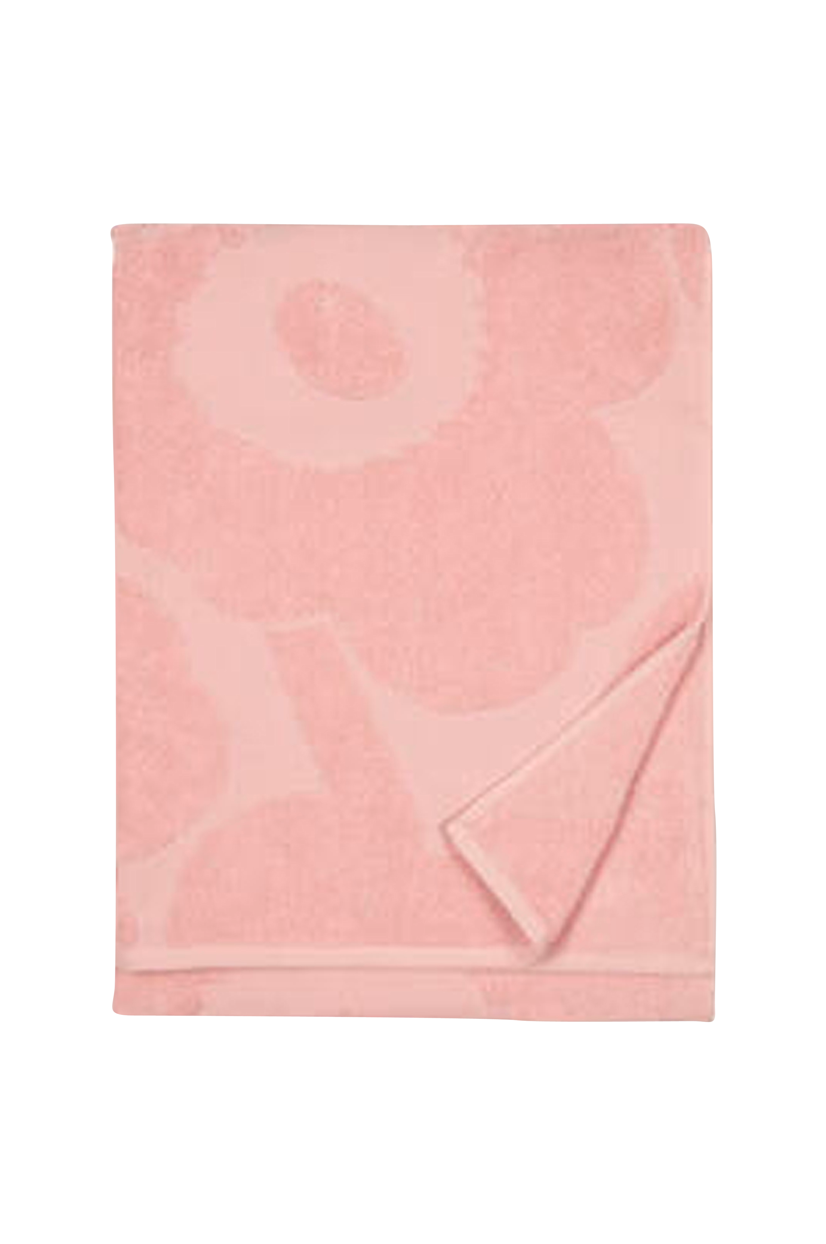 Det prægede Unikko-badehåndklæde er lavet af økologisk bomuldsfrotté. Håndklædets bagside er jævn. Unikko, som symboliserer kreativitet, blev født i en tid, hvor der næsten ikke var blomstermønstre i Marimekkos kollektioner. Maija Isola var dog fascineret af temaet blomster og besluttede at skabe en hel række nye blomstermønstre.