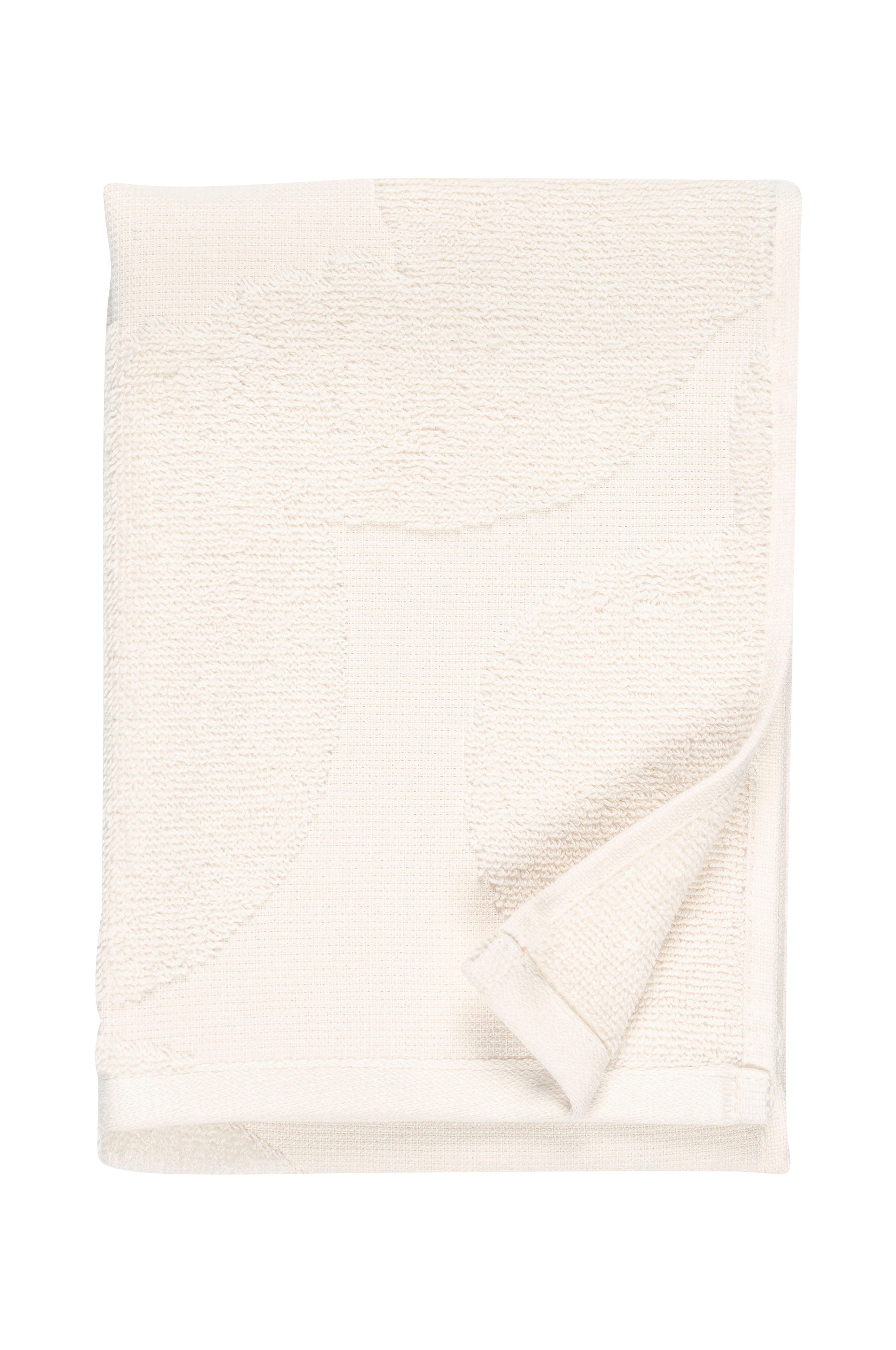 Badehåndklædet med det prægede Unikko -mønster er lavet af økologisk bomuldsfrotté. Bagsiden af håndklædet er glat. Unikko symboliserer kreativitet, og det blev født i en tid, hvor der næsten ikke var nogen blomsterdesigns i Marimekkos kollektioner. Maija Isola var imidlertid fascineret af blomstertemaet og besluttede at skabe en hel serie af nye blomsterprint.