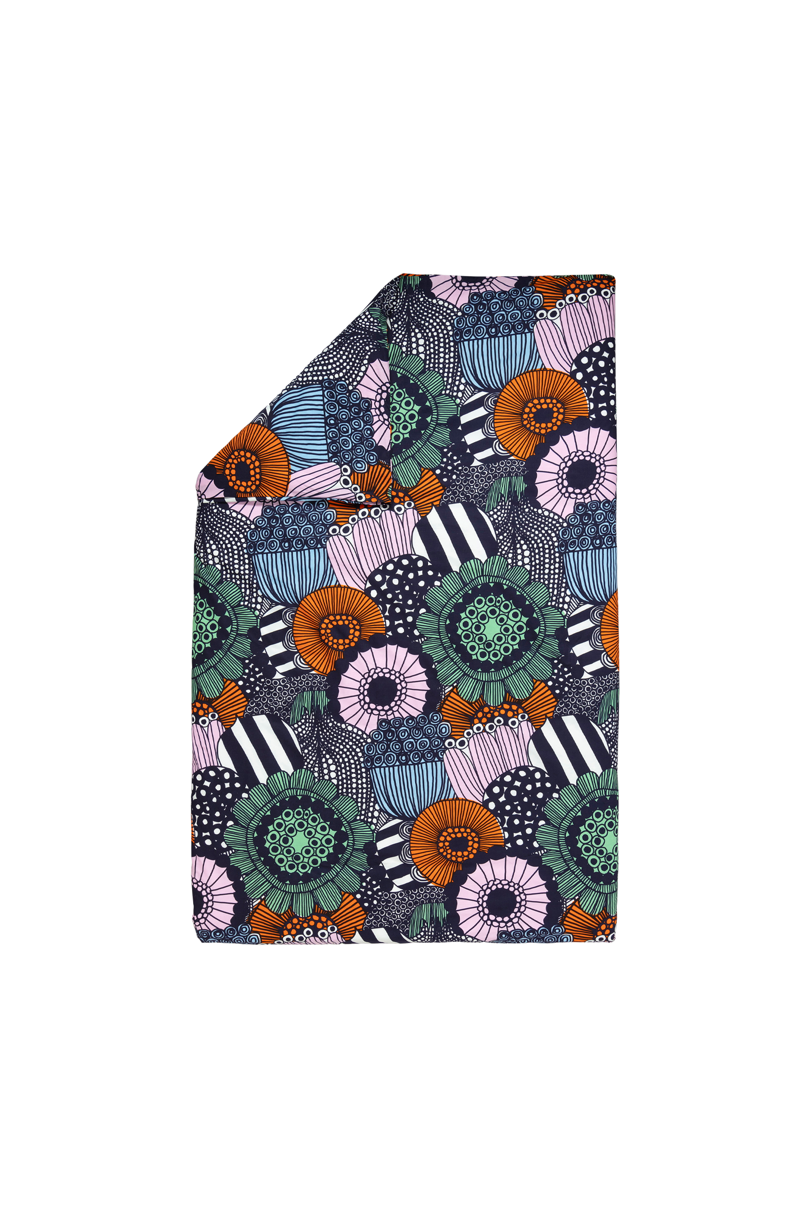 Det mønstrede Siirtolapuutarha dynebetræk er lavet af 200 Tc økologisk bomuld. Maija Louekaris Siirtolapuutarha (city garden) er en strålende stregtegning, som fortæller en historie om en rejse fra et travlt bycenter til en kolonihave, der bugner af blomster og grøntsager.