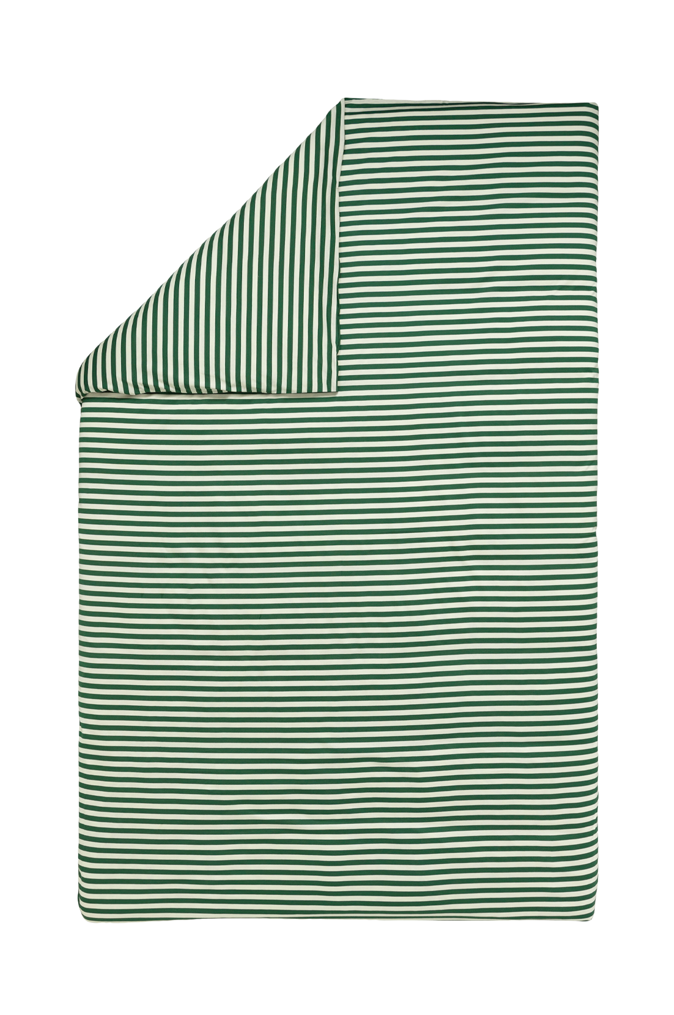 Det mønstrede Tasaraita dynebetræk er lavet af økologisk bomuldsjersey. Håndåbninger i de øverste hjørner gør det lettere at skifte betræk.