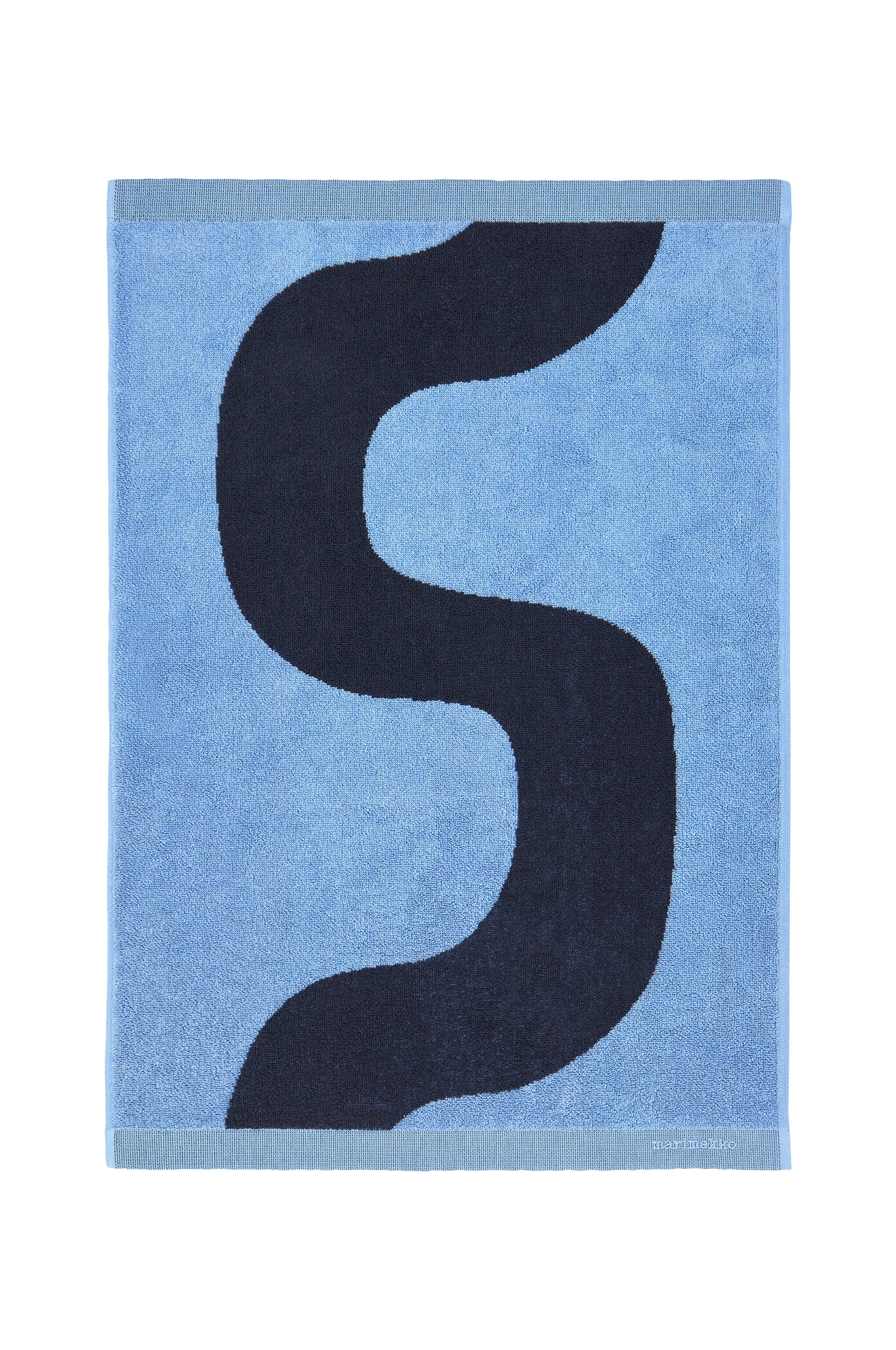 Håndklæde i bomuldsfrotté med mønstret Seireeni (sirene). Seireeni stof fra Marimekko har et bølgende grafisk mønster i tre farver. Maija Isola, der står bag designet, fik inspirationen til bevægelsesmønstret i vandet, da hun var på rejse i Grækenland i begyndelsen af 1960'erne. Bomuldsstoffet, der blev designet i 1964, kan bruges til pudebetræk, gardiner, forklæder og duge - kun din fantasi sætter grænser! Navnet Seireeni kommer fra sirenerne, et væsen i græsk mytologi, der tiltrak sømænd ved at synge fortryllende sange til dem.