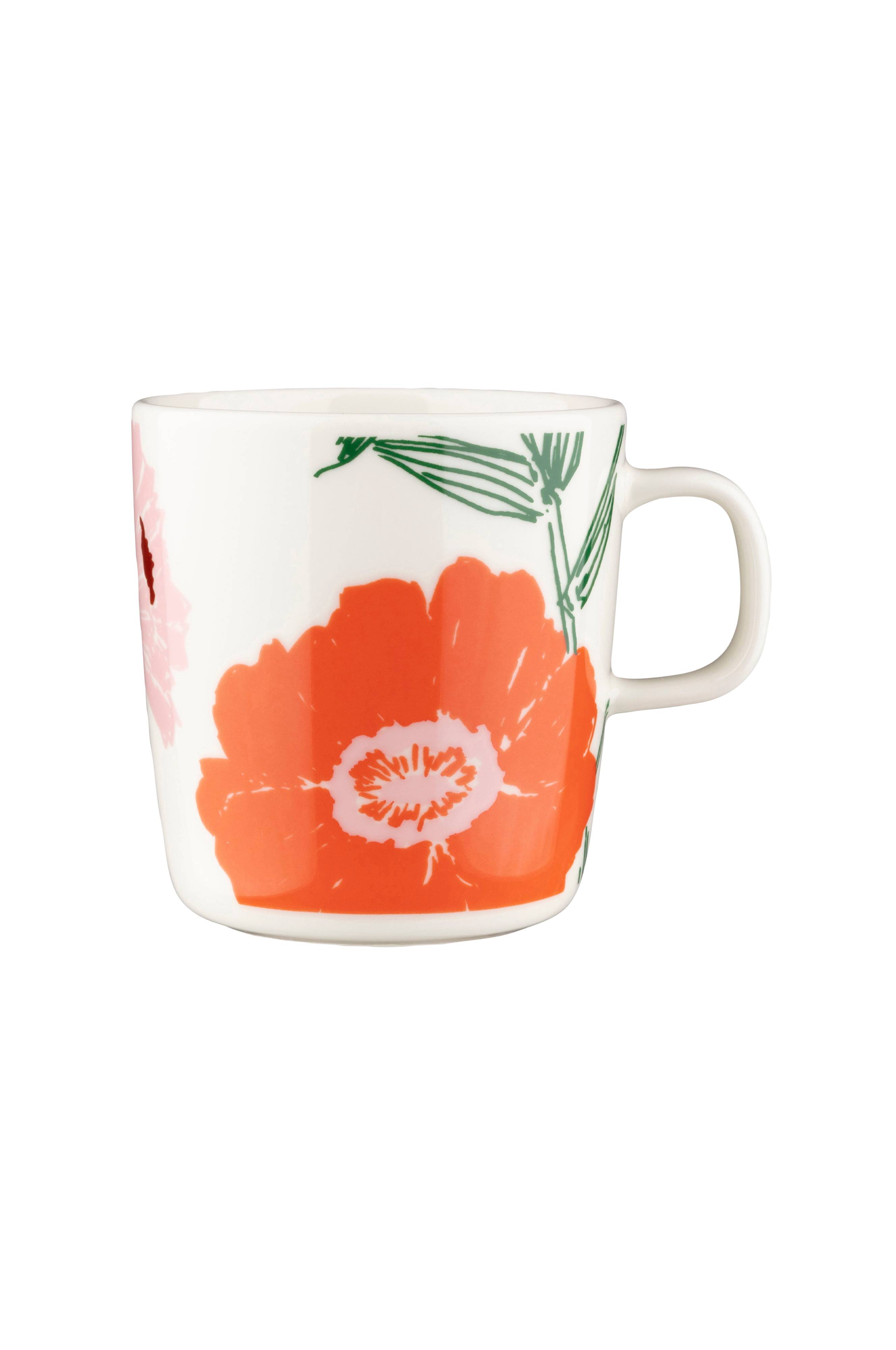 Det store Oiva-krus med Puutarhakutsut -mønster er lavet af hvidt stentøj, der tåler opvaskemaskine, ovn, mikroovn og fryser. Fjern venligst klistermærket fra bunden af produktet før brug. Klistermærket indeholder en lille mængde metal. 9,5 x 10 cm.