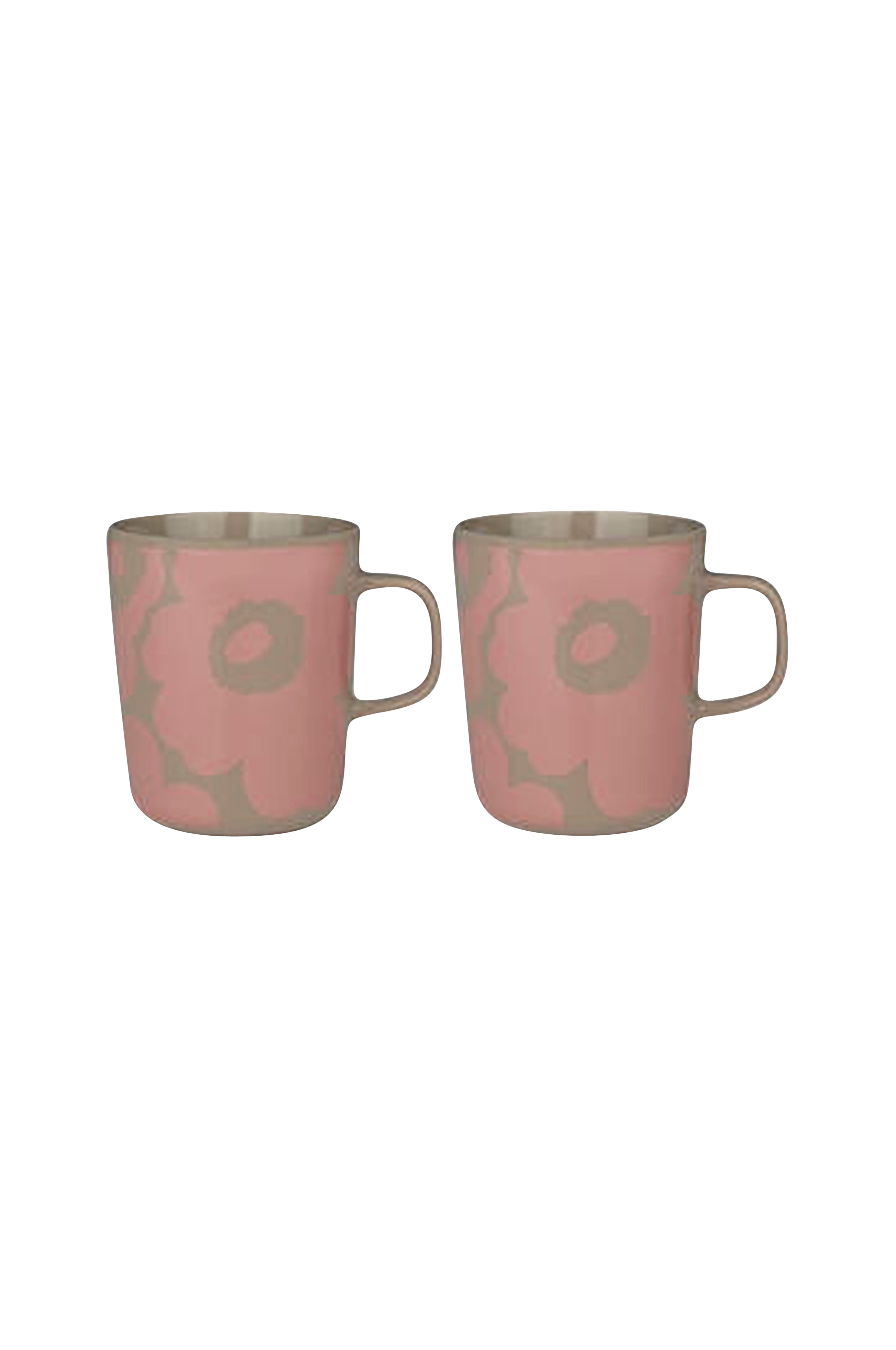 Dette sæt indeholder to Oiva-krus lavet af brunt stentøj. Krusene med Unikko-mønster tåler opvaskemaskine, ovn, mikrobølgeovn og fryser. Sættet er pakket i Marimekko-logoets mønsteremballage. Fjern klistermærket fra bunden af produktet før brug. Klistermærket indeholder en lille smule metal. Unikko, som symboliserer kreativitet, blev født i en tid, hvor der næsten ikke var nogen blomstermønstre med i Marimekkos kollektioner. Maija Isola var dog fascineret af temaet blomster og besluttede at skabe en hel række nye blomstermønstre.