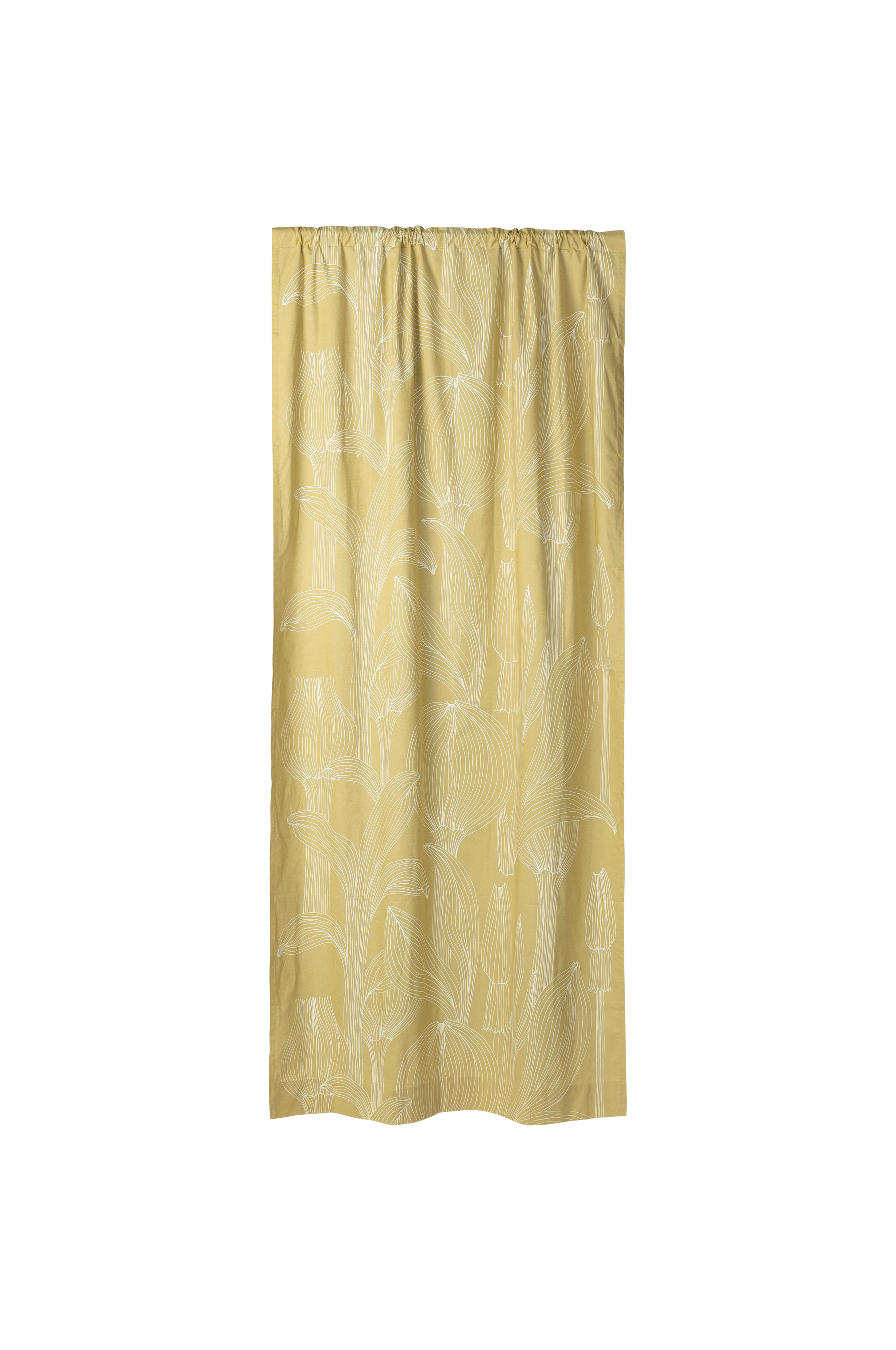 Det færdigsyede gardin med mønster Kukat Puhkeavat har et gardinbånd i den øverste kant, som gør det nemt at hænge op enten på en gardinstang eller med ophængsklemmer fra en gardinstang. Gardinbåndet hjælper også med at samle gardinet efter ønske. Gardinet er lavet af 100 % økologisk bomuld. Maija Louekaris Kukat puhkeavat (flowers bloom) mønster udforsker blomster fra græsrodsniveau og skildrer det særlige øjeblik, hvor knopperne springer ud i blomst. Mønsterets stregtegnede overflade skaber også en stribet effekt, som, når den ses i stor skala, giver ro. I et øjeblik er alting smukt - men så flygtigt. Verden er fuld af mirakler!