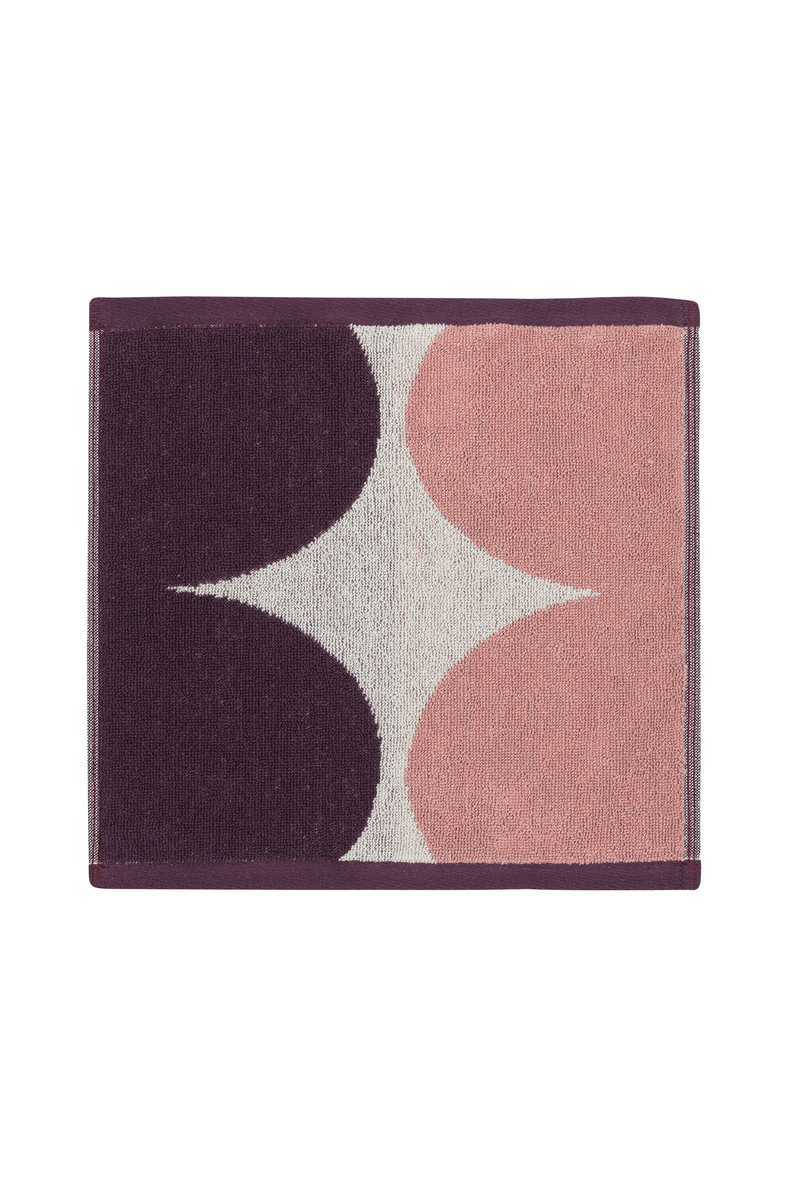 Lille håndklæde i bomuldsfrotté med Härkä-mønsteret. Mønstret på bagsiden har modsatte farver sammenlignet med forsiden. Maija Isolas katalog med mere end 500 mønstre er en uudtømmelig skat. Härkä er et af hendes geometriske mønstre fra 1960'erne, hvor vi ser, at hun udforsker den konstruktivistiske bevægelse, som på den tid voksede frem på den finske kunstscene.