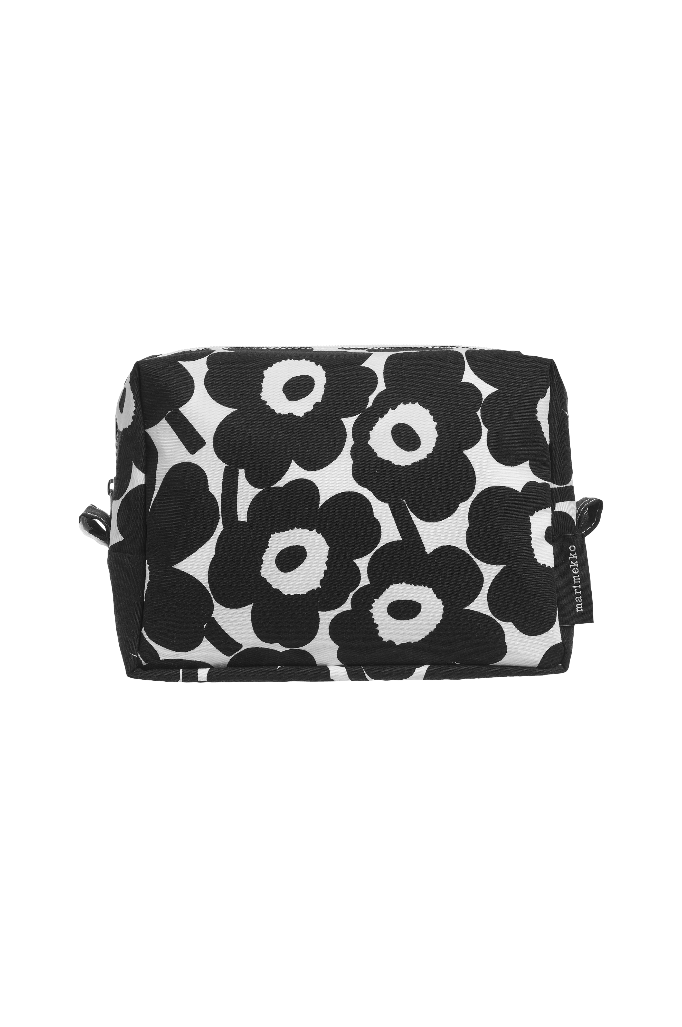 Vilja stor makeup-pung i bomuld med Mini Unikko-mønsteret. Printet i Helsingfors. Åbning med lynlås og inderside af nylon med to rum til børster og pensler.