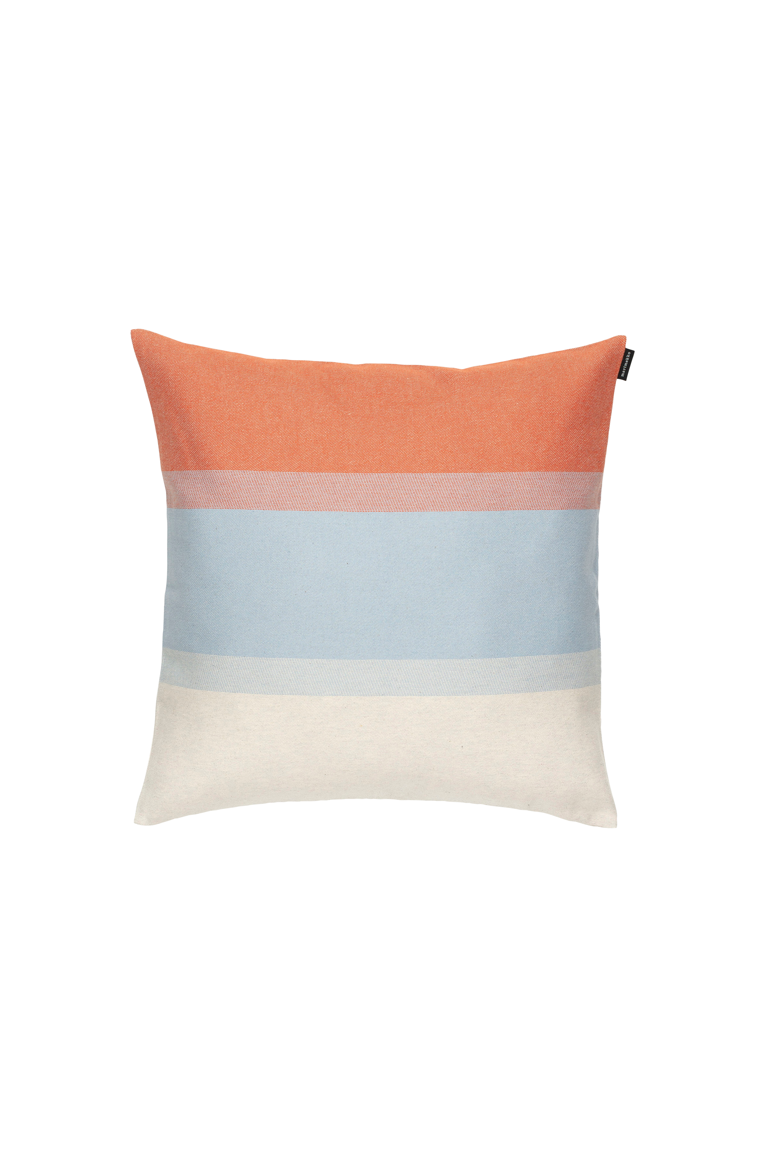 Det jacquardstrikkede pudebetræk med Hennika -mønster er lavet af en blanding af bomuld og hør. Betrækket har en skjult lynlås i den ene side. Dette produkt indeholder 53 % genanvendt bomuld, 10 % genanvendt hør og 37 % økologisk bomuld. Ublegede stoffer samt stoffer, der indeholder genbrugsfibre, har en naturlig livlig farve og overflade, hvor der kan forekomme små forskelligfarvede områder. Der kan være forskelle mellem produkter med hensyn til denne egenskab. Hennika er et lækkert, friskt og samtidig roligt stribet mønster dannet af store farveflader. Print designet af Vuokko Eskolin-Nurmesniemi, som arbejdede hos Marimekko fra 1953 til 1960, repræsenterer tidløst Marimekko-design i sin kerne.