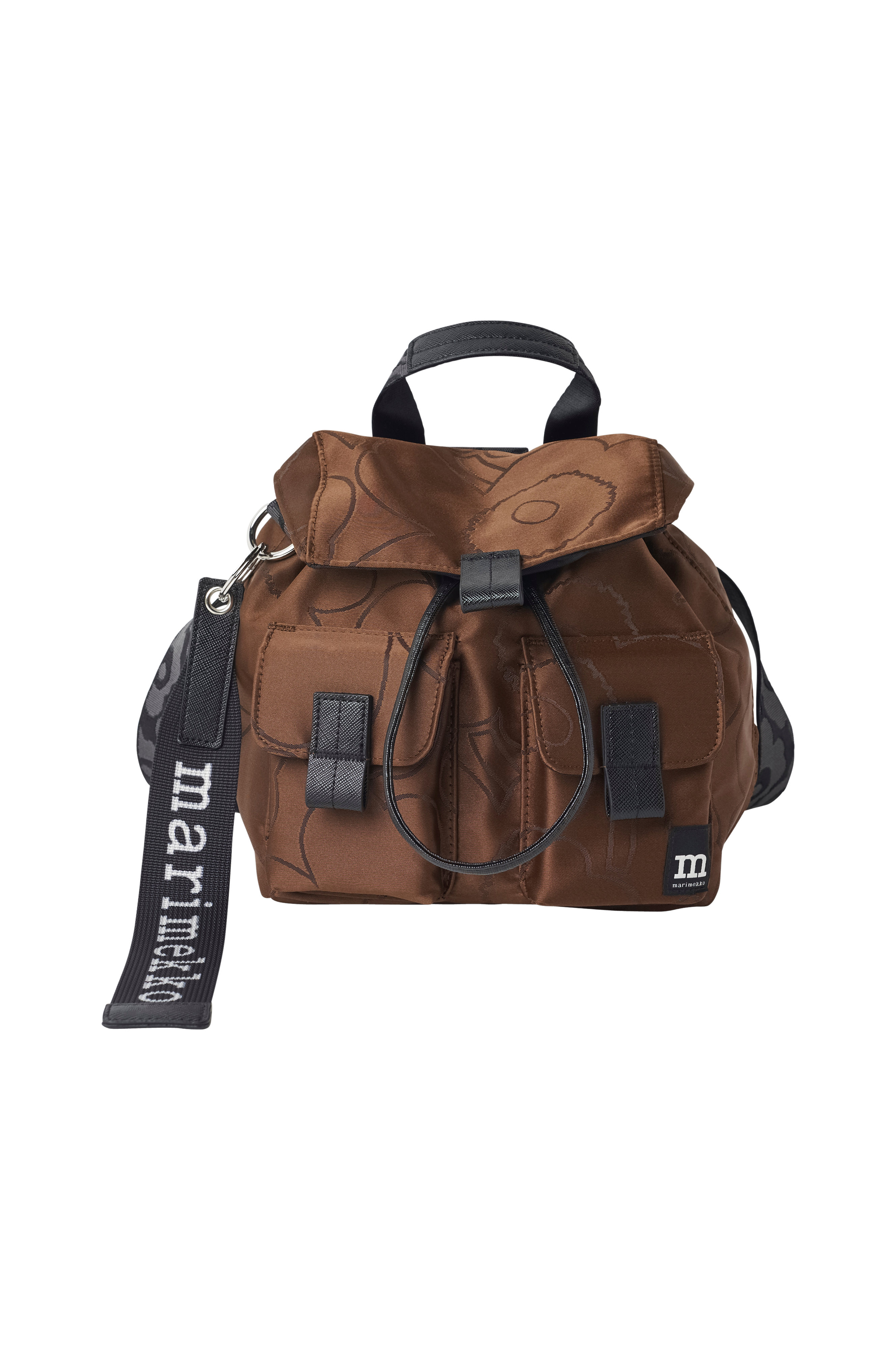 • Der er en Marimekko-nøglering på den ene side og et rum på bagsiden.