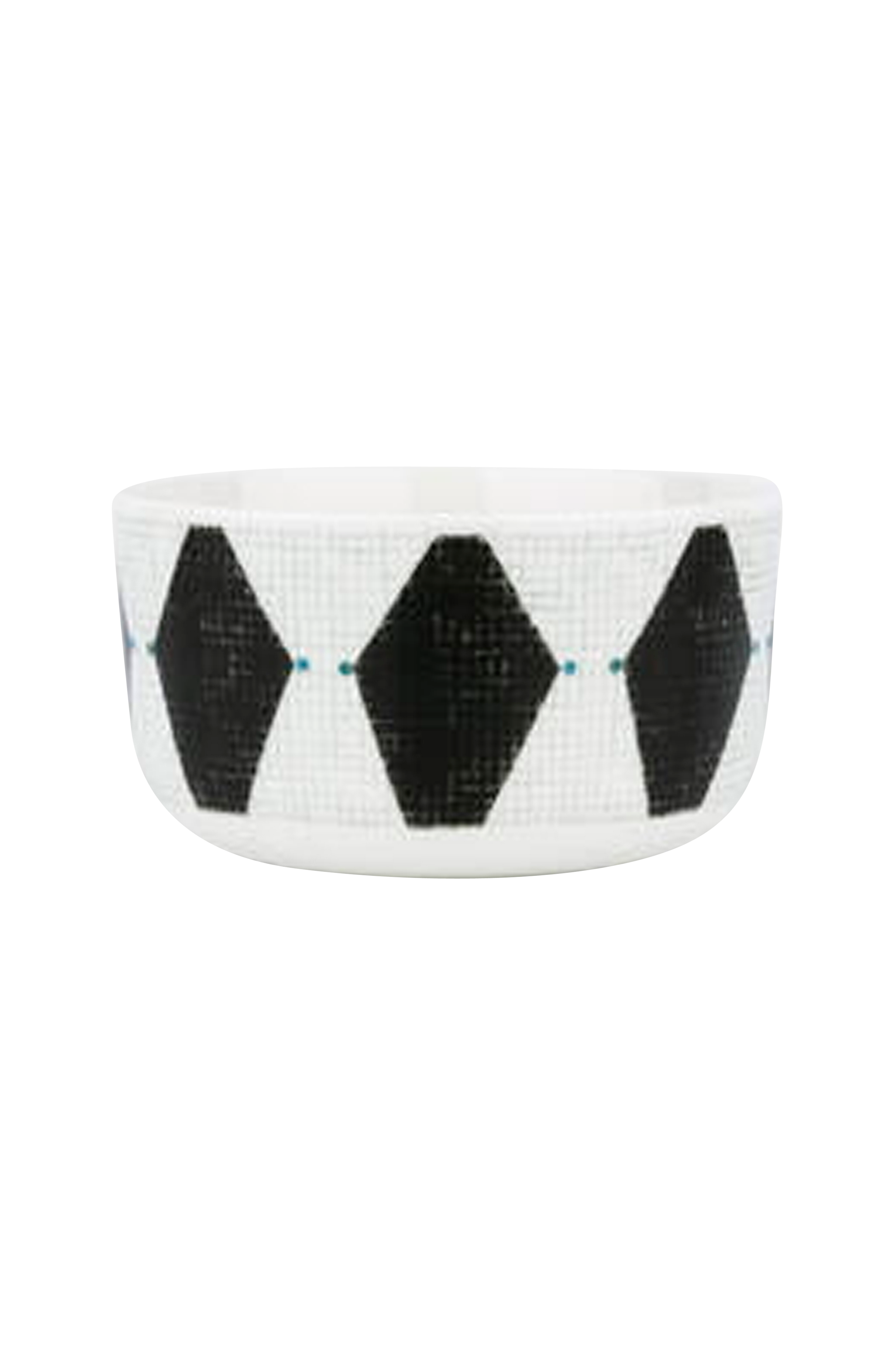 Oiva-skålen er lavet af hvidt stentøj, der tåler opvaskemaskine, ovn, mikrobølgeovn og fryser. Ved hjælp af simple hverdagsmotiver og former bringer kunstværket af den Barcelona-baserede tyske kunstner Sabine Finkenauer os et samspil mellem repræsentativt og abstrakt udtryk baseret på gentagelse. Sabines udsøgte kunstværk, der er skabt i hånden med oliepastel, er nu realiseret ved hjælp af forskellige teknikker og materialer i nogle af de mest ikoniske Marimekko hjemmeprodukter.