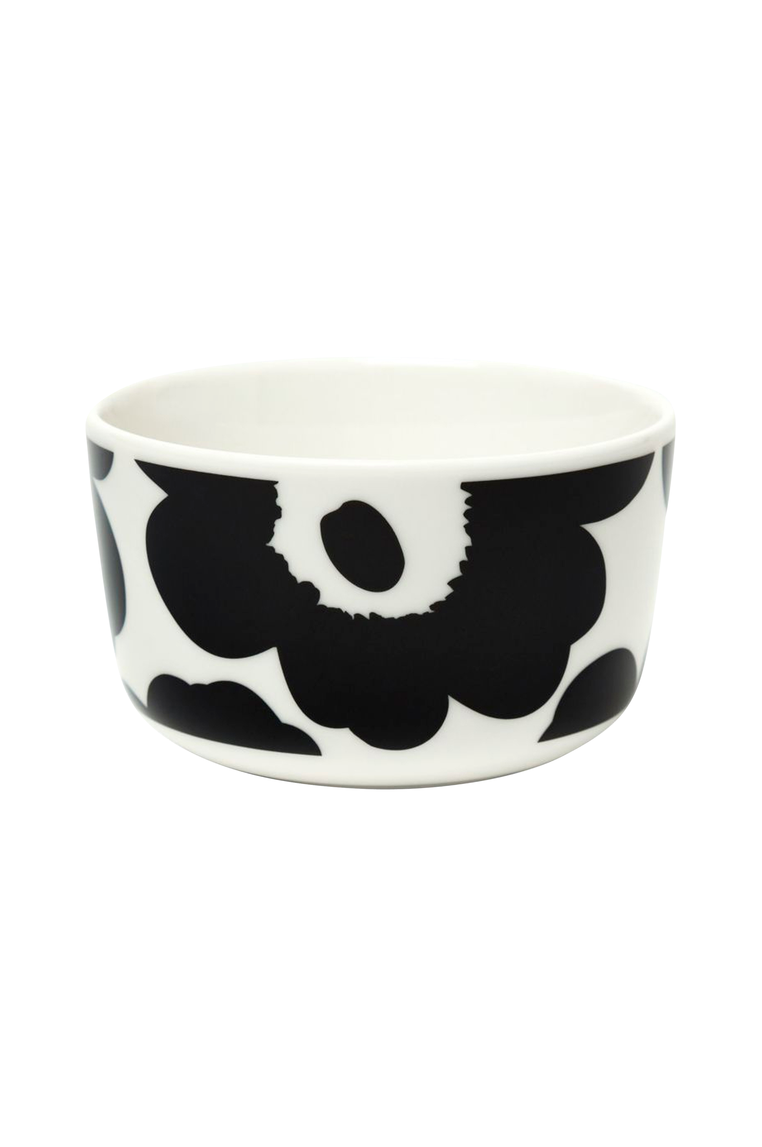 Lille Skål Oiva med Unikko-mønster (valmue). Hvidt stentøj som tåler opvaskemaskine, ovn, mikrobølgeovn og fryser.