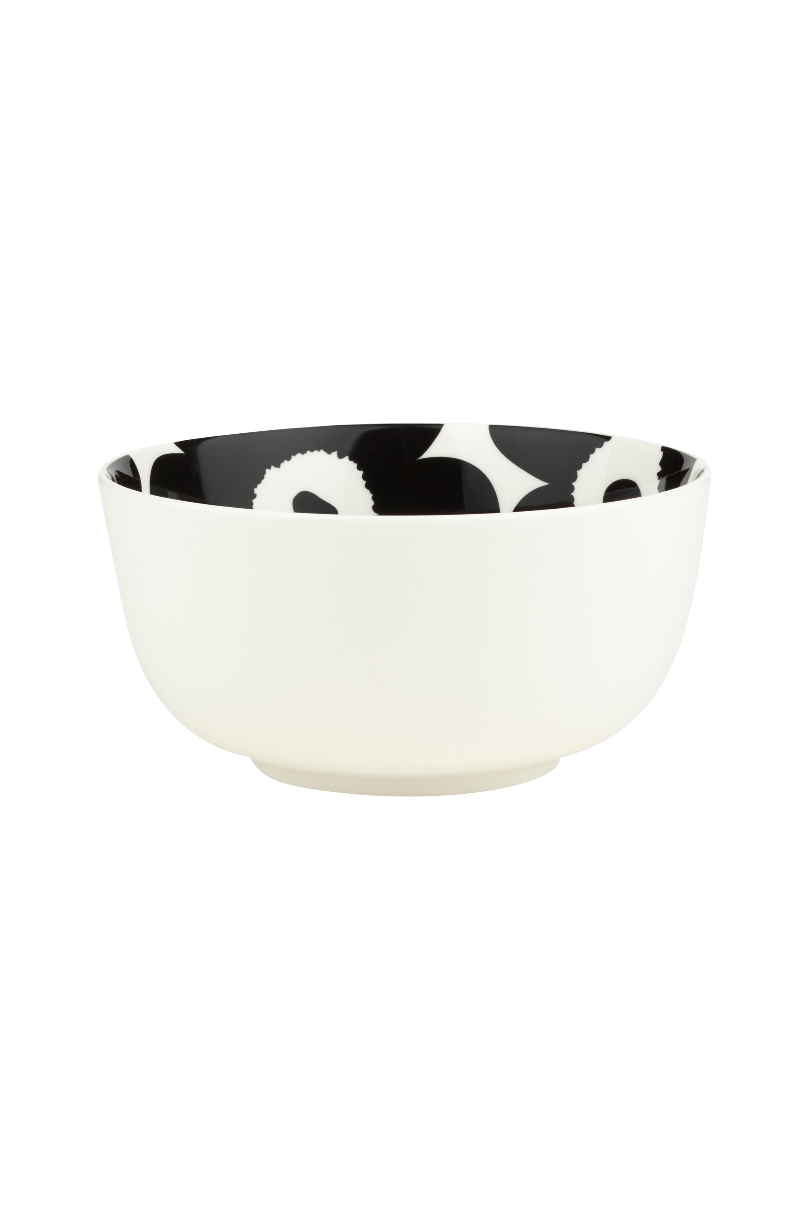 Den store Oiva-skål er lavet af hvidt porcelæn, og den har Unikko -mønsteret på indersiden. Skålen tåler opvaskemaskine, ovn, mikroovn og fryser.