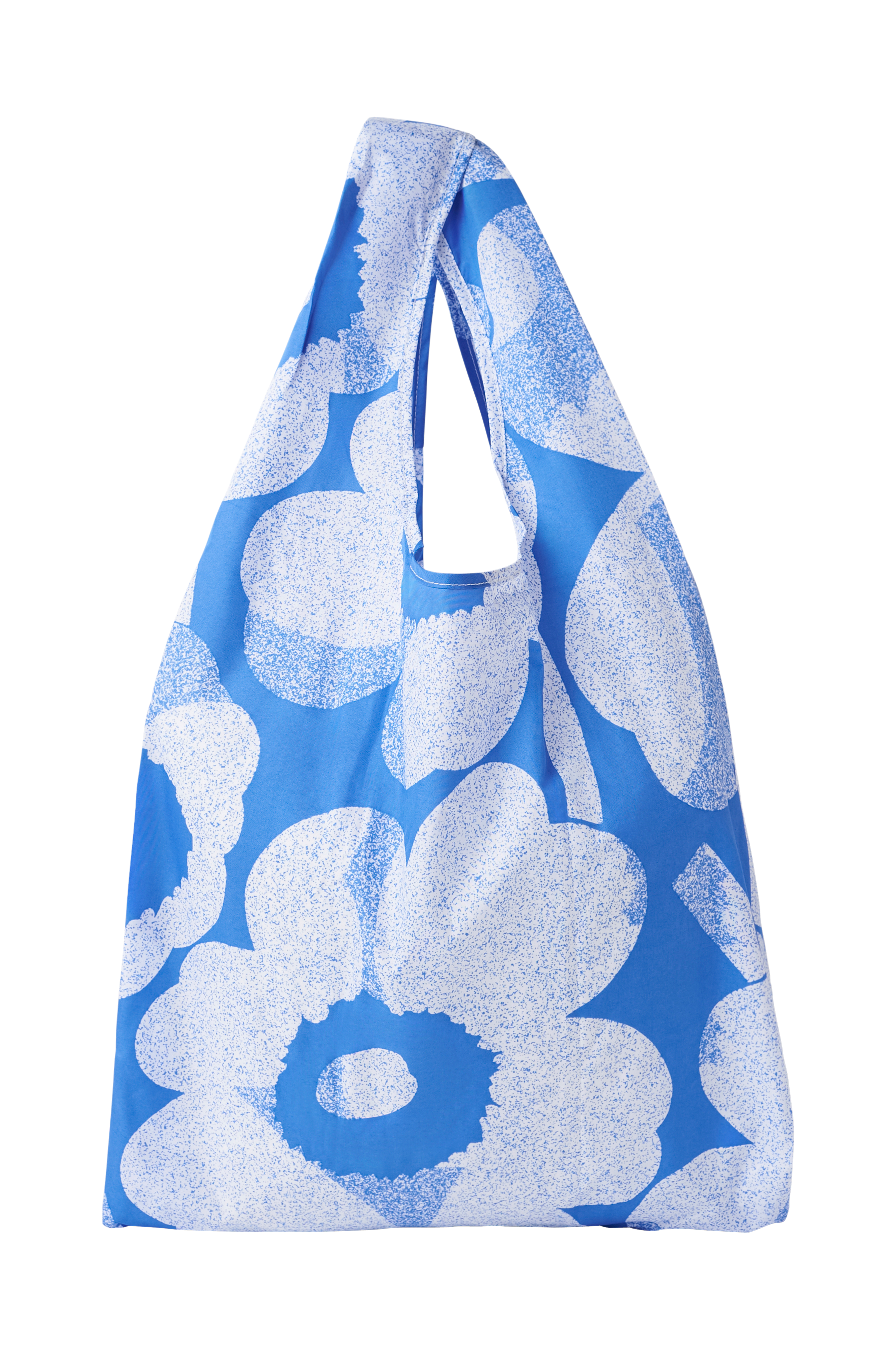 Smartbag er lavet af genbrugspolyester i Unikko-mønster. Når tasken ikke er i brug, kan den foldes sammen og opbevares i inderlommen.Hovedmaterialet i dette produkt er lavet af 100 % genbrugspolyester.Unikko, der symboliserer kreativitet, blev født i en tid, hvor der næsten ikke var nogen blomsterdesigns i Marimekkos kollektioner. Maija Isola var imidlertid fascineret af blomstertemaet og besluttede at skabe en hel serie af nye blomsterprint.