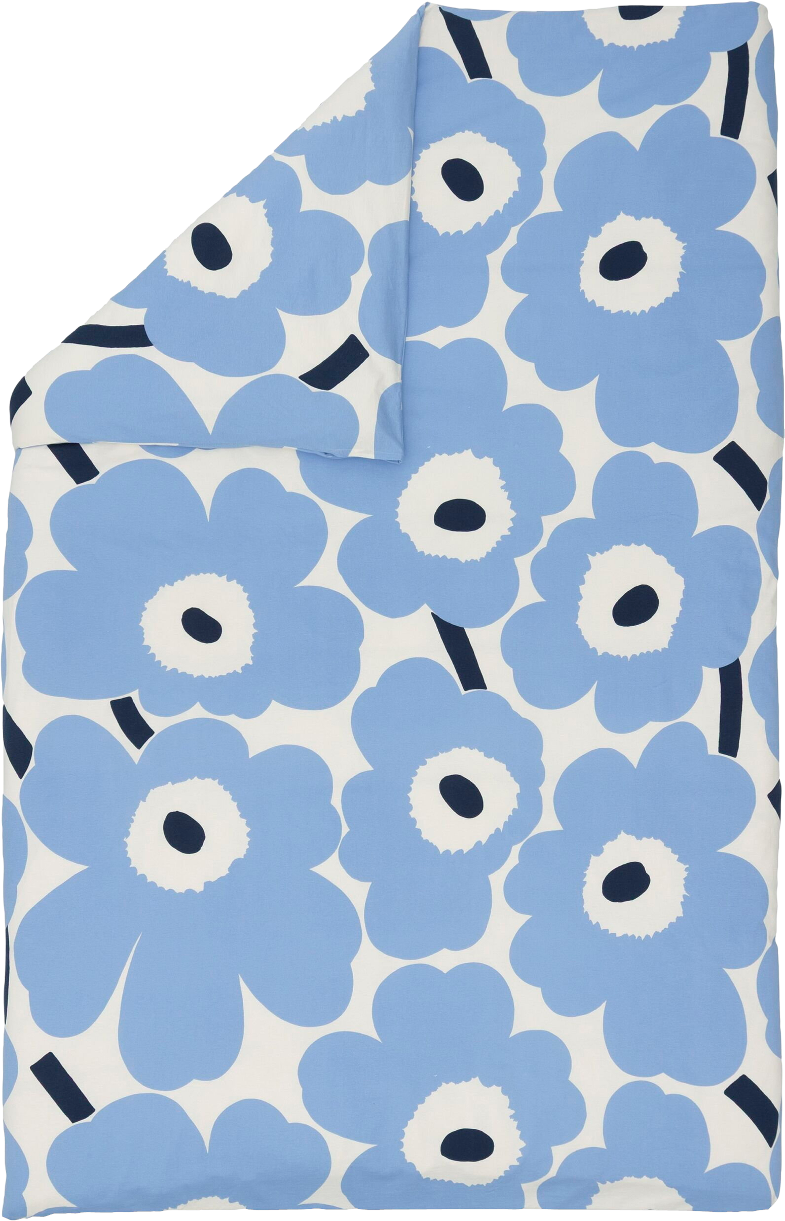 Dette bløde og strækbare Unikko mønster enkeltdynebetræk har håndåbninger i de øverste hjørner, som gør det lettere at skifte betræk. Dynebetrækket er lavet af 100 % bomuld jersey. Produktet er pakket i en pose af samme materiale. Unikko Marimekko, der symboliserer kreativitet, blev født i en tid, hvor der stort set ikke var blomstermotiver i Marimekkos kollektioner. Maija Isola var imidlertid fascineret af blomstertemaet og besluttede at skabe en hel serie af nye blomsterprint. Dette er at anbefale: Vask med lignende farver, Følg den angivne vasketemperatur, Vask før brug, Vask separat 3 gange.