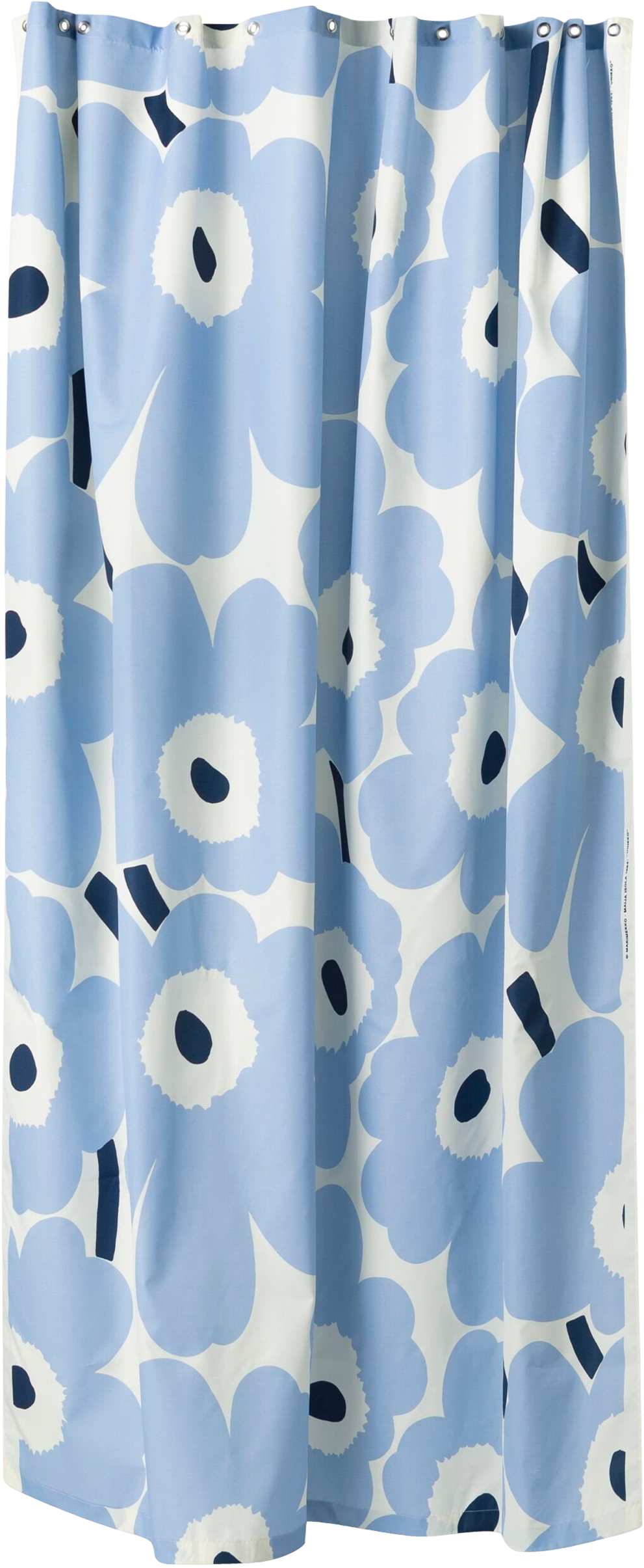 UnikkoMarimekko, der symboliserer kreativitet, blev født i en tid, hvor der næsten ikke var nogen blomsterdesigns i Marimekkos kollektioner. Maija Isola var imidlertid fascineret af blomstertemaet og besluttede sig for at skabe en hel serie af nye blomsterprint. Anbefales: Skyl curtain efter hver shower og spred det ud til tørre, Følg den angivne vasketemperatur, Vask separat, Strygning efter vask aktiverer vandafvisningen.