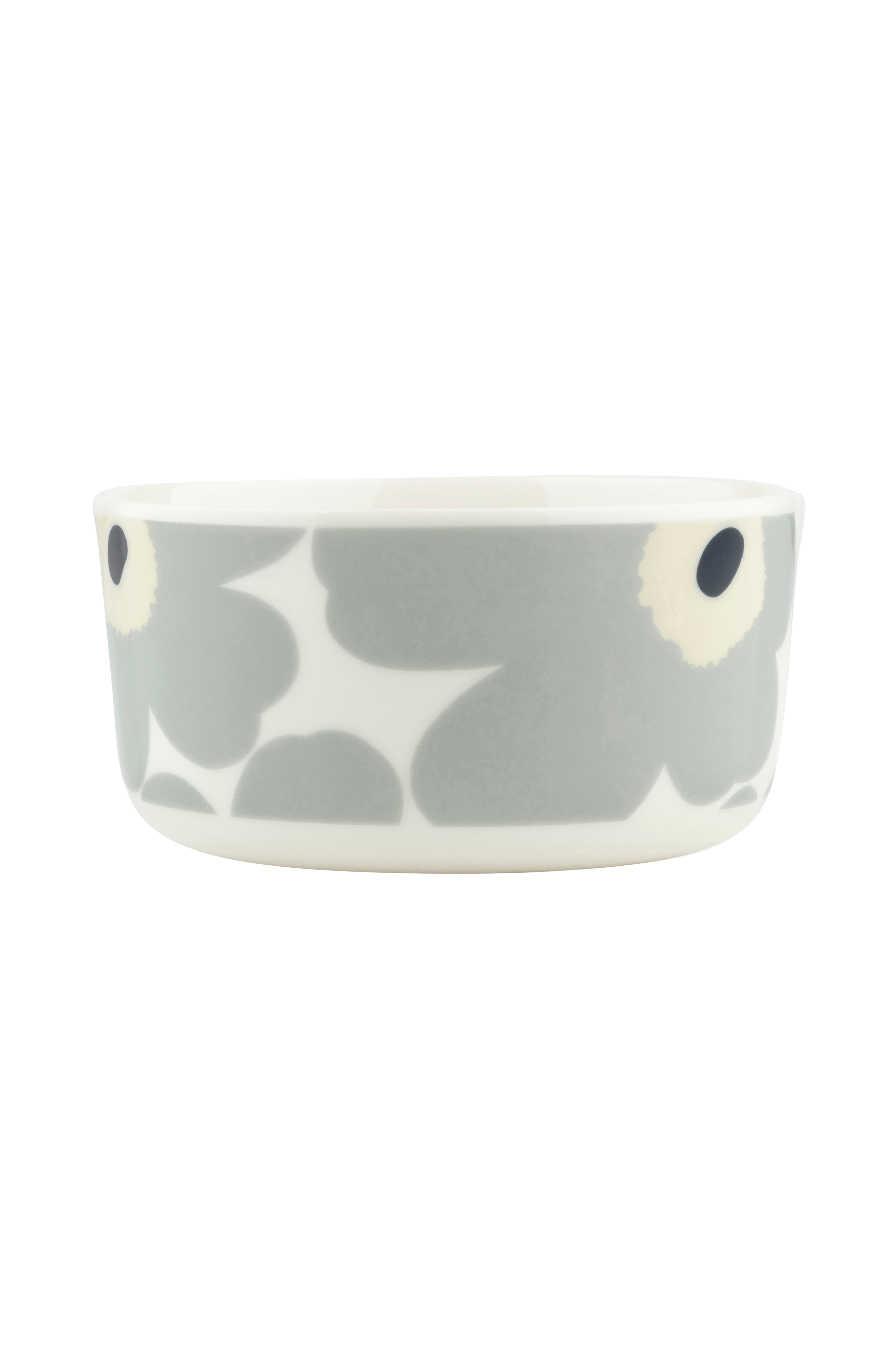 Oiva-skålen er lavet af hvidt stentøj, der tåler opvaskemaskine, ovn, mikroovn og fryser. Fjern venligst klistermærket fra bunden af produktet før brug. Klistermærket indeholder en lille smule metal. Unikko blev skabt af Maija Isola i 1964 og er siden blevet et internationalt ikon for printdesign. Grundlæggeren af Marimekko, Armi Ratia, mente, at det ikke var muligt at indfange den sande essens af ægte blomster på tryk, og derfor var blomsterprint tidligere udelukket fra Marimekko-kollektionerne. Så Maija Isola designede Unikko til at være en abstraktion af en blomst snarere end en fotorealistisk gengivelse. I dag er Unikko et stærkt symbol på glæde og kreativitet, som er integreret i Marimekkos designidentitet.