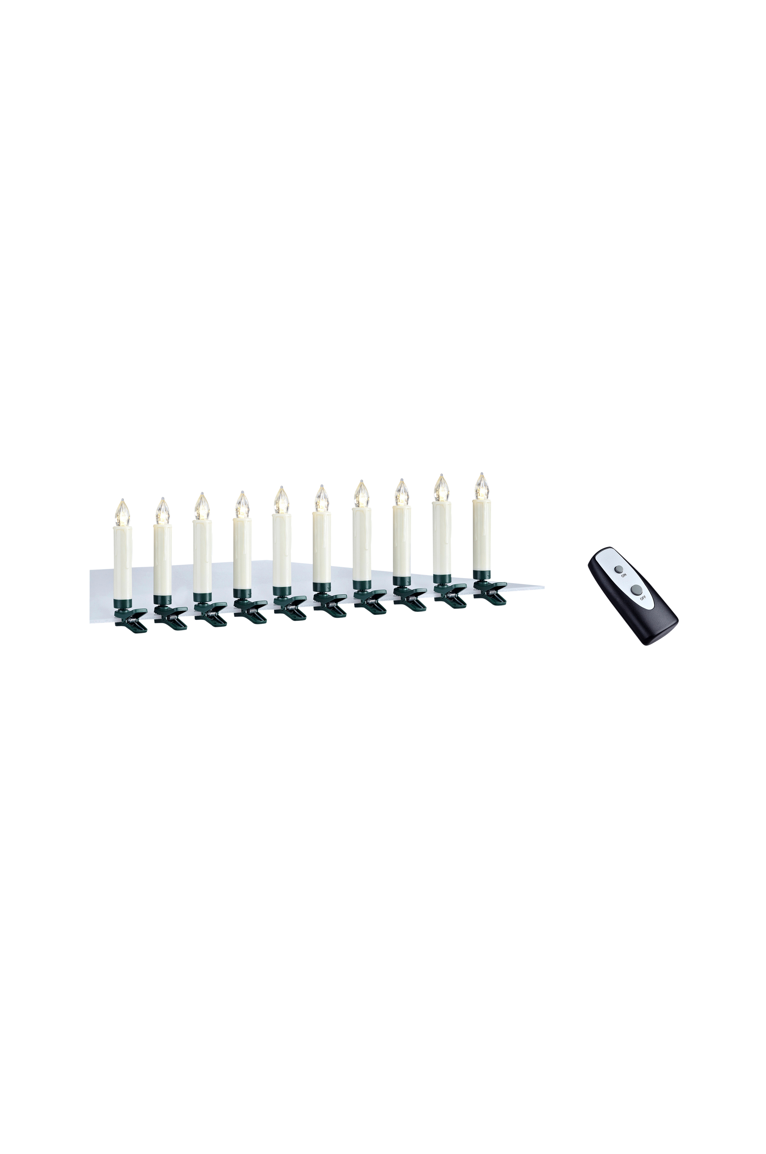 Symfoni, dekoration fra Markslöjd. Jultræsbelysning med 10 lys uden ledning. Batteridrevet, 1x AAA/lys. (Batteri medfølger ikke). Tænd og sluk med fjernbetjening. Bredde 1,5 cm, dybde 1,5 cm og højde 10,5 cm.