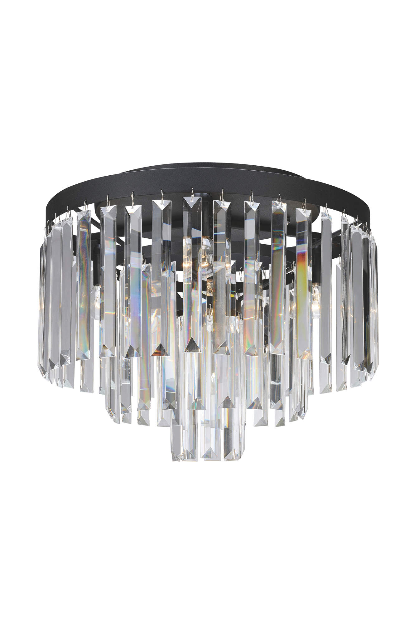 Ventimiglia krystalplafond fra Markslöjd. Sort metalbase med maskinskårede prismer. Fire stk. fatning E14. Længde 42, bredde 42, højde 32 cm. Lyskilde medfølger ikke.Lampeudtag til loftet indgår ikke på grund af et nyt EU-direktiv. De kan bestilles separat.
