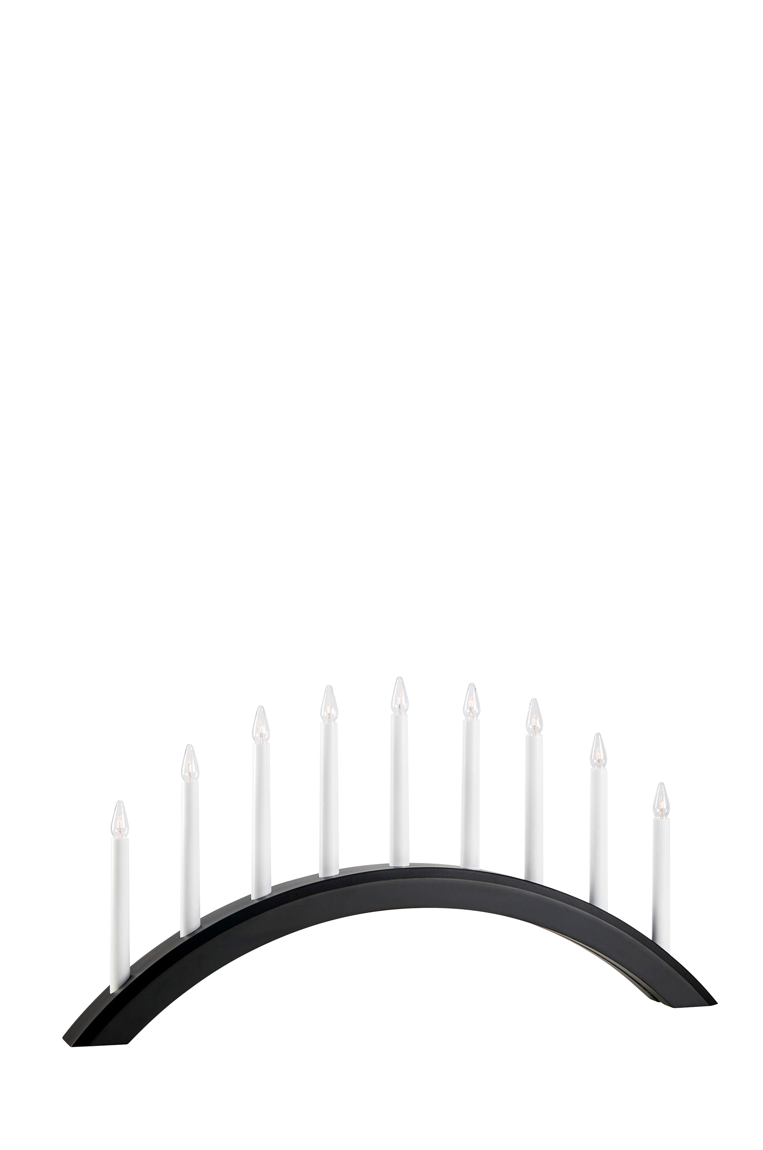 Smuk og elegant buet lysestage i hvidt træ med 9 lys, der passer til et stort vindue.