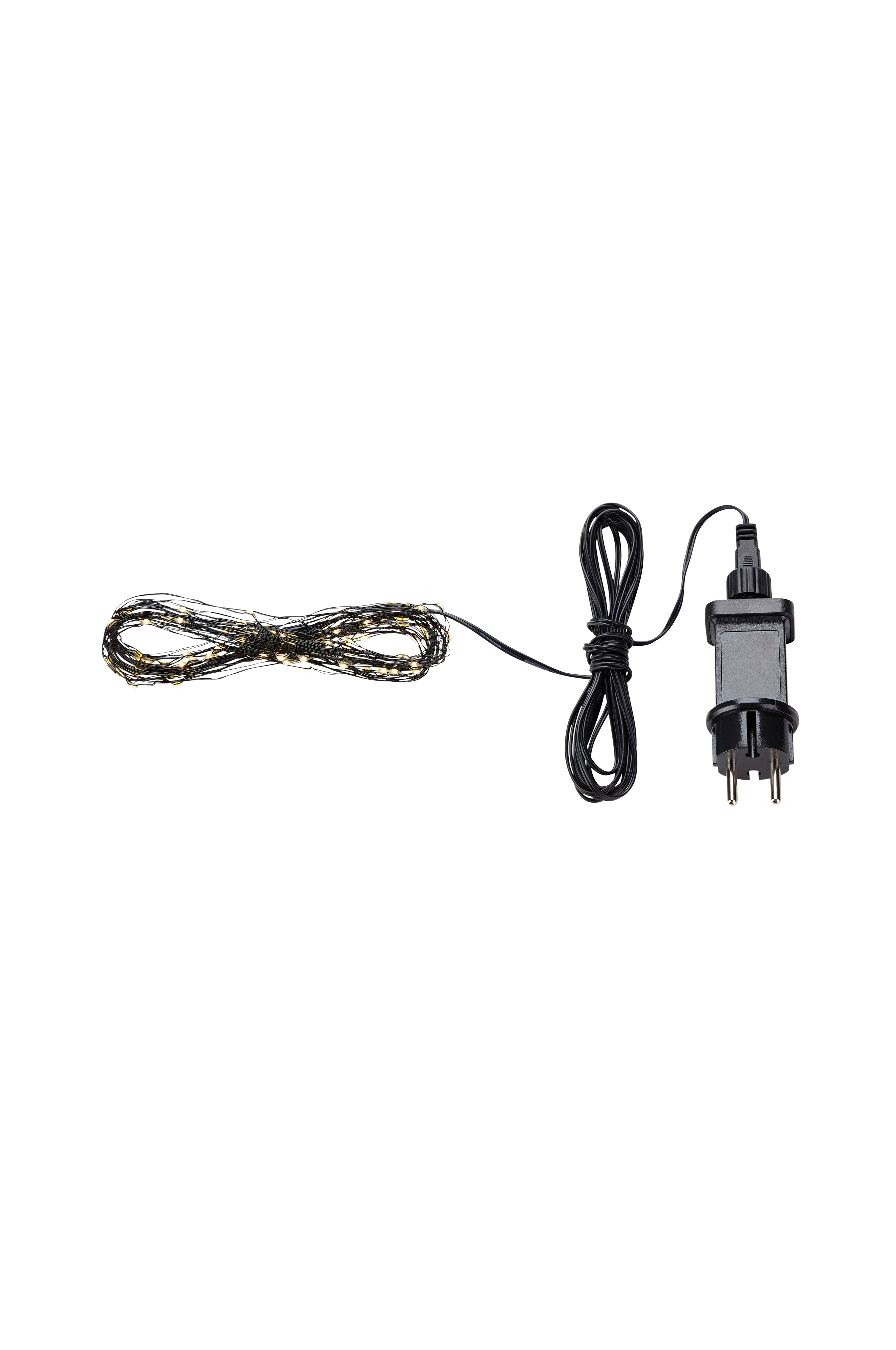 Fenix 80 Mini LED-lyskæde. Lyskilden giver en varm hvid farve. Lyskædens længde 7,9 meter + 3 meter tilslutningsledning. IP44-transformator.