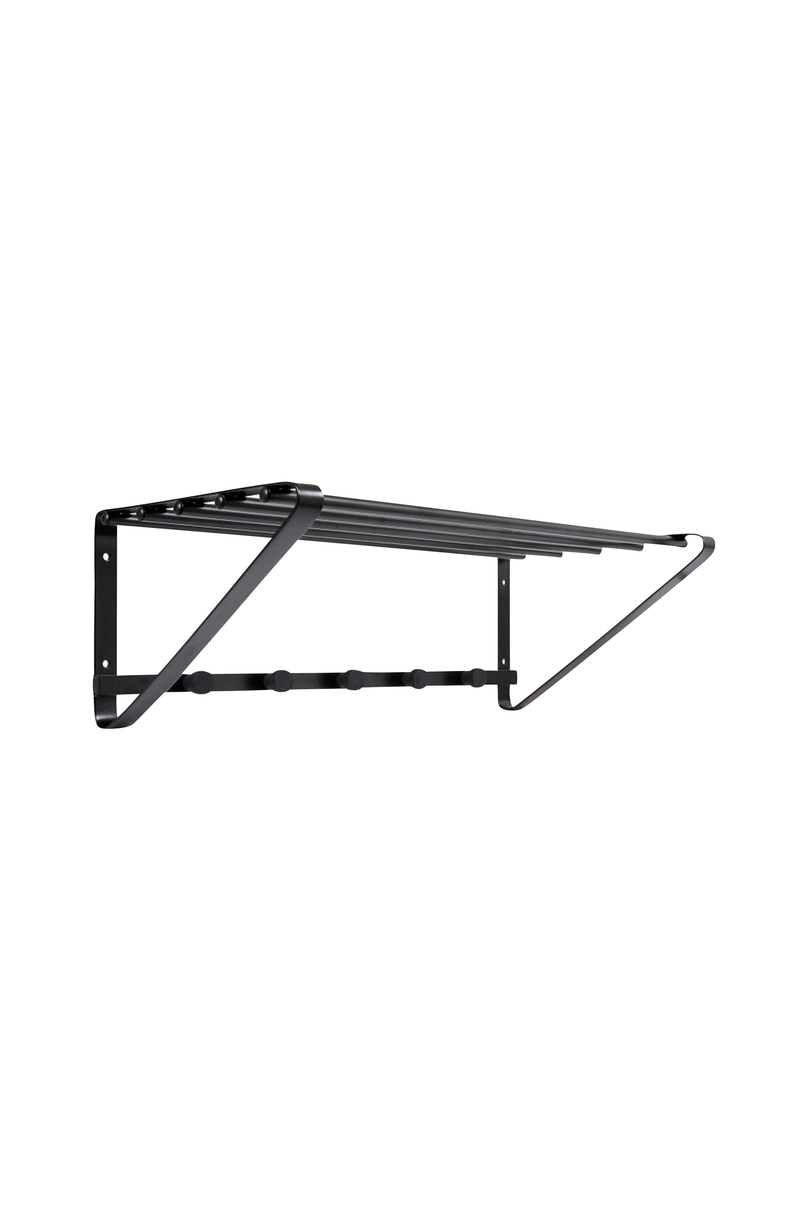 Stord hattehylde i stål med 5 bøjler. Leveres usamlet.