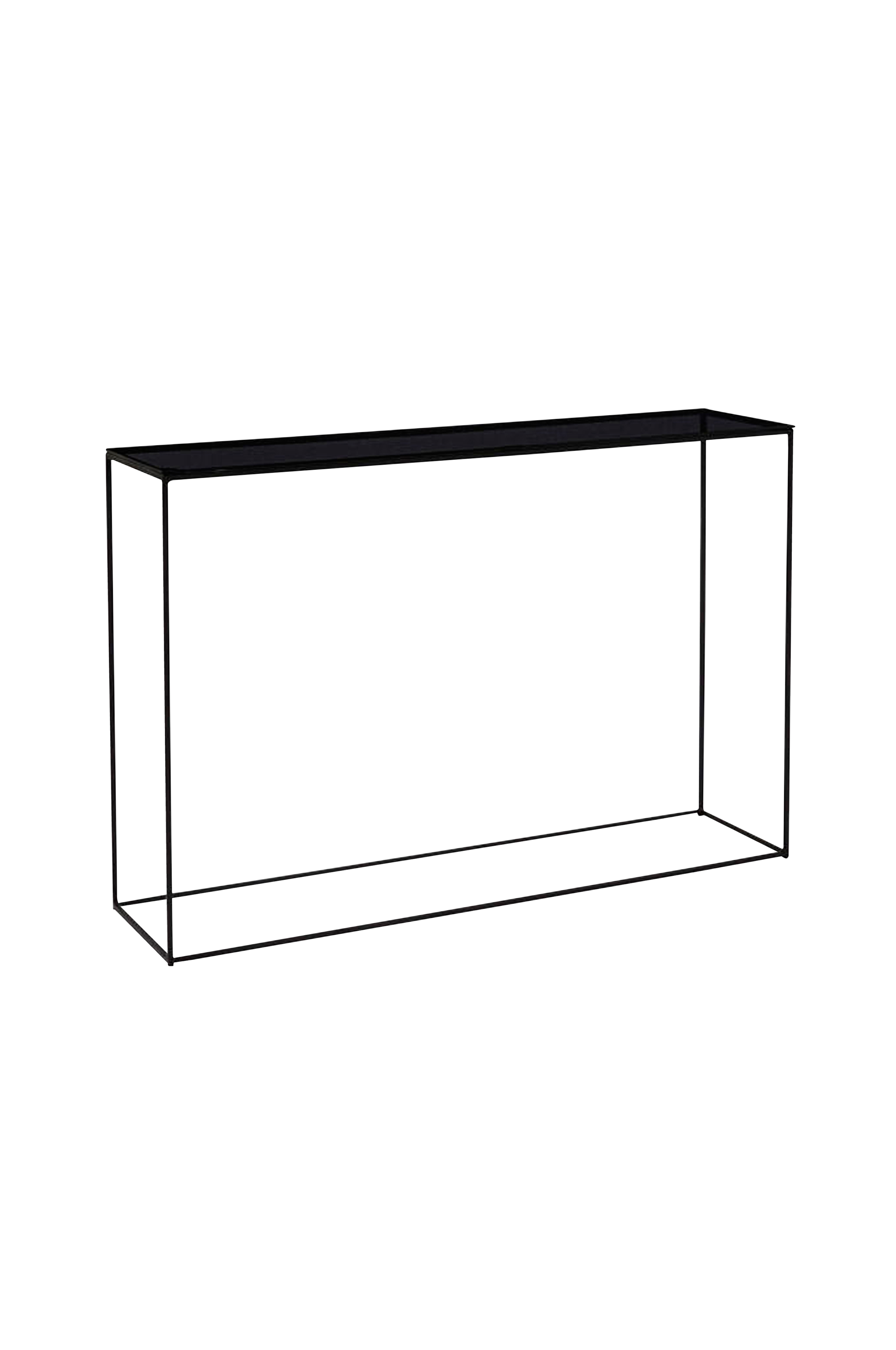 Flot aflastningsbord med stel i sortfarvet metal og sorte glasplader.