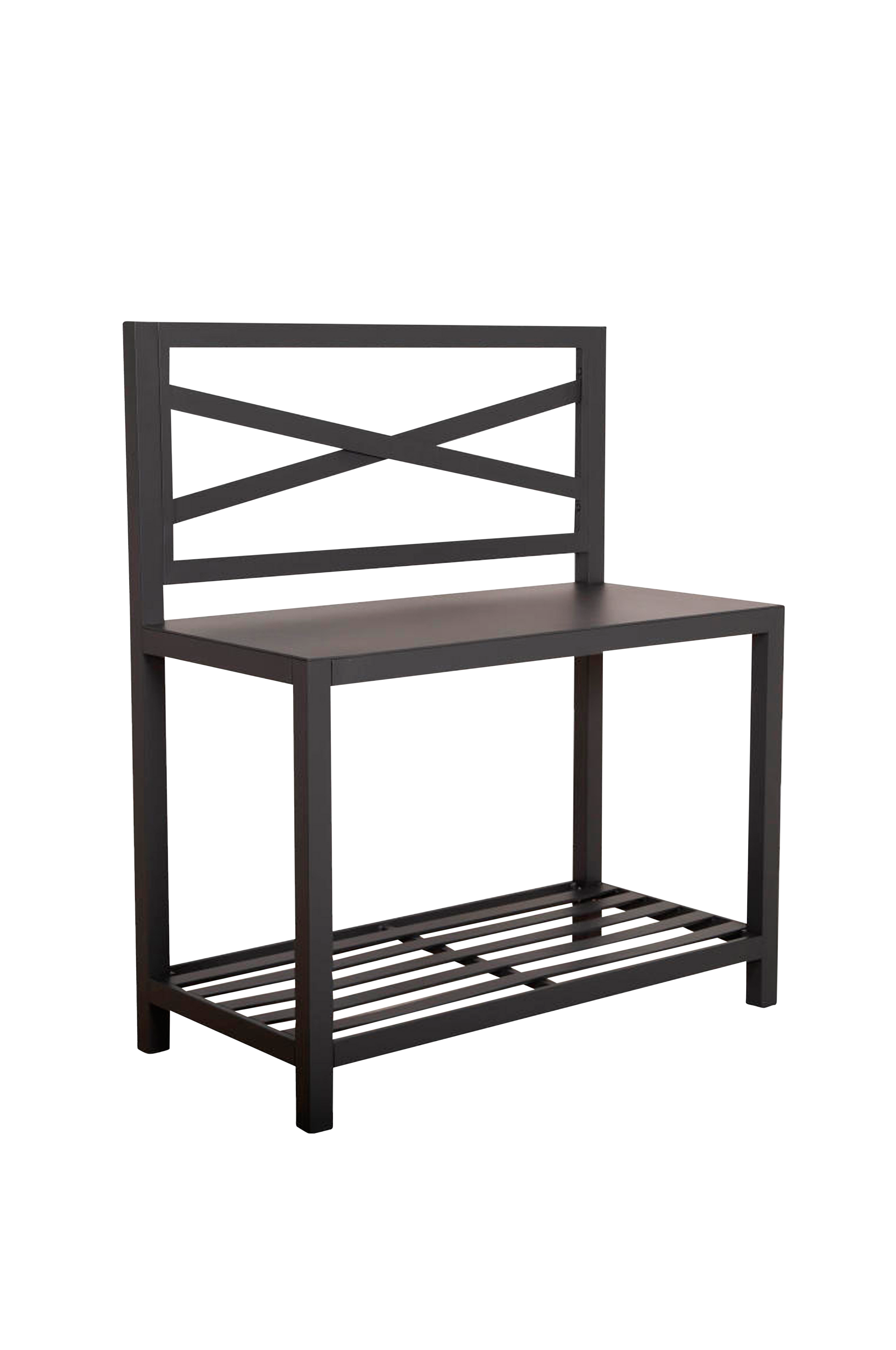 Udendørs køkkenbord uden håndvask. Fremstillet med en pulverlakeret aluminiumsramme og en pulverlakeret aluminiumsplade. Med plads til opbevaring nedenunder. Med tre kroge til ophængning af udstyr på bagvæggen. Leveres usamlet.