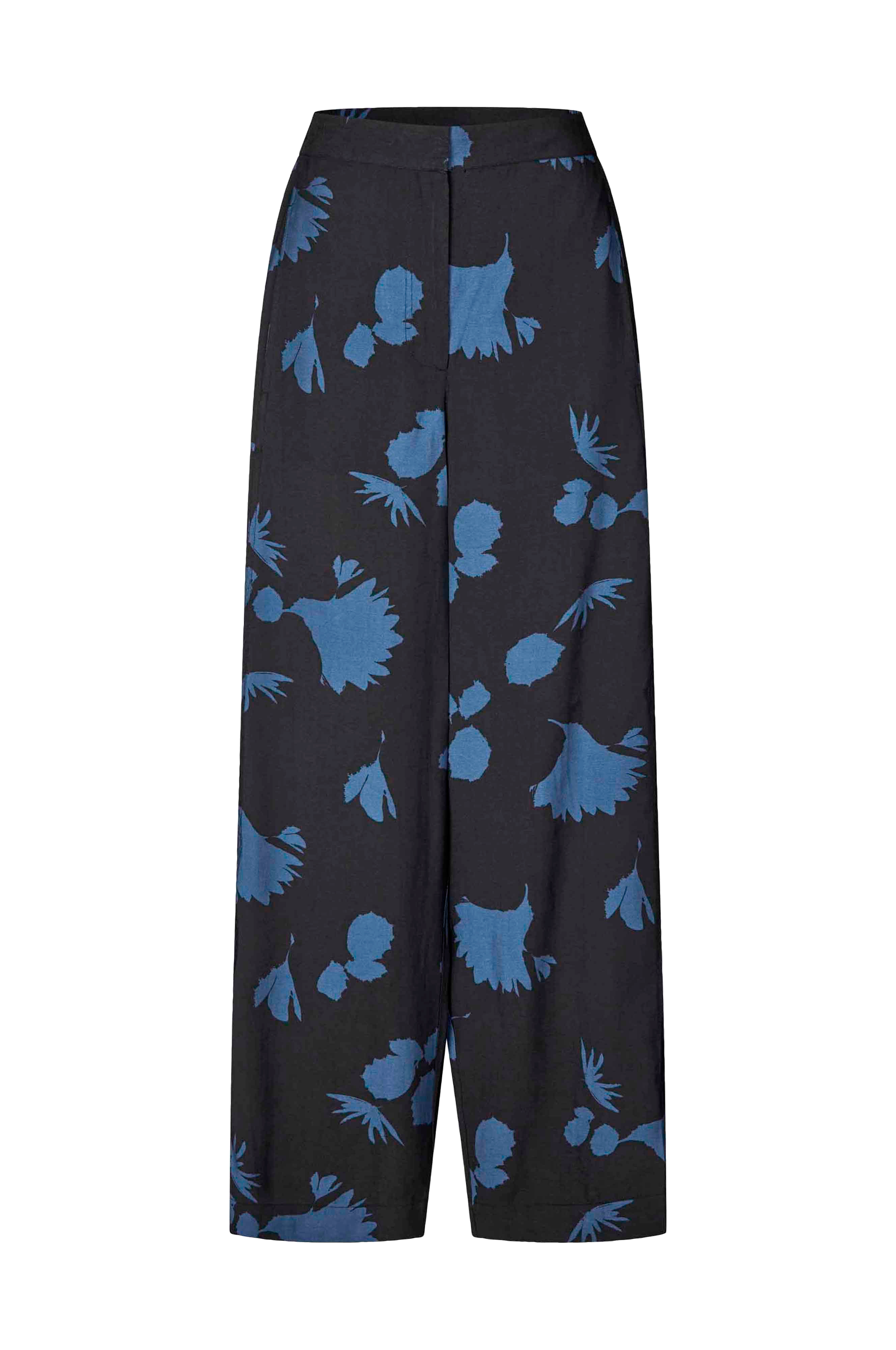 • Højtaljede bukser i viskoseblanding med løs pasform• Gylp med lynlås med hægtelukning• Elastik i siderne af taljen• Sidelommer• Snydelommer bagpå• Indre benlængde: 77 cm i størrelse S