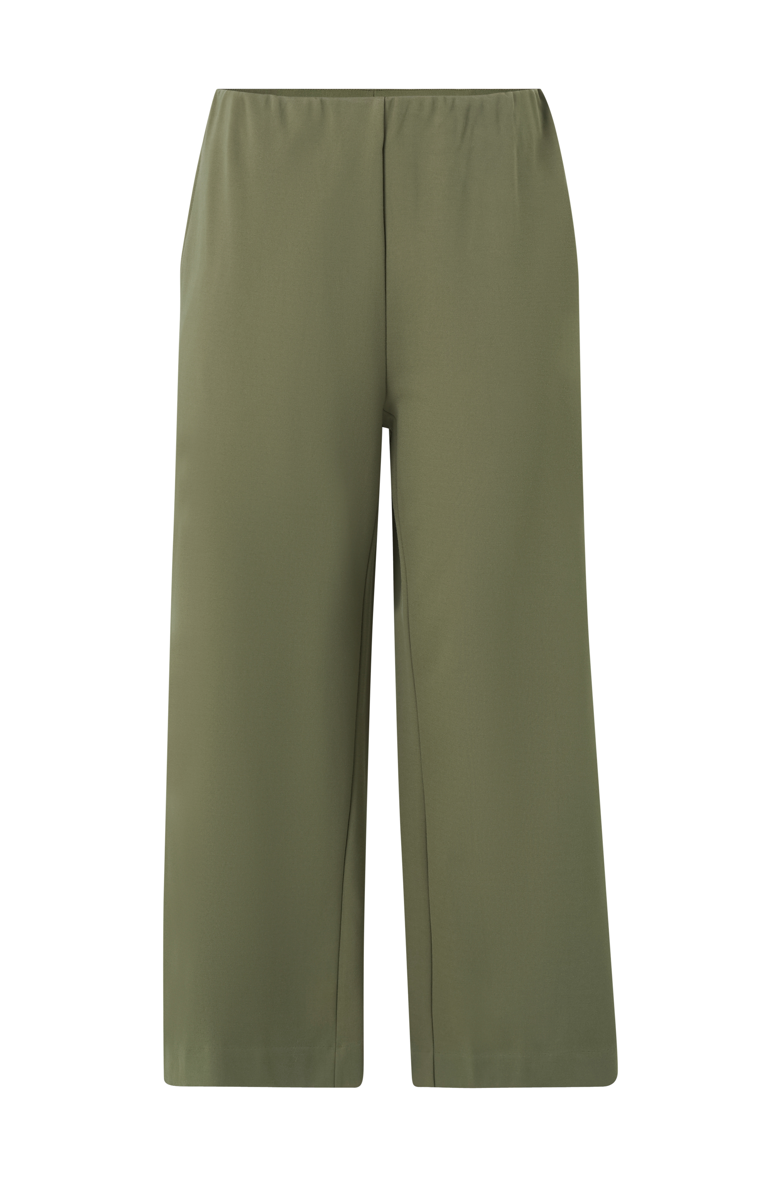 Vide bukser i ankellang model med lommer i siderne og skjult elastik i taljen. I kraftig jersey med tungt fald.