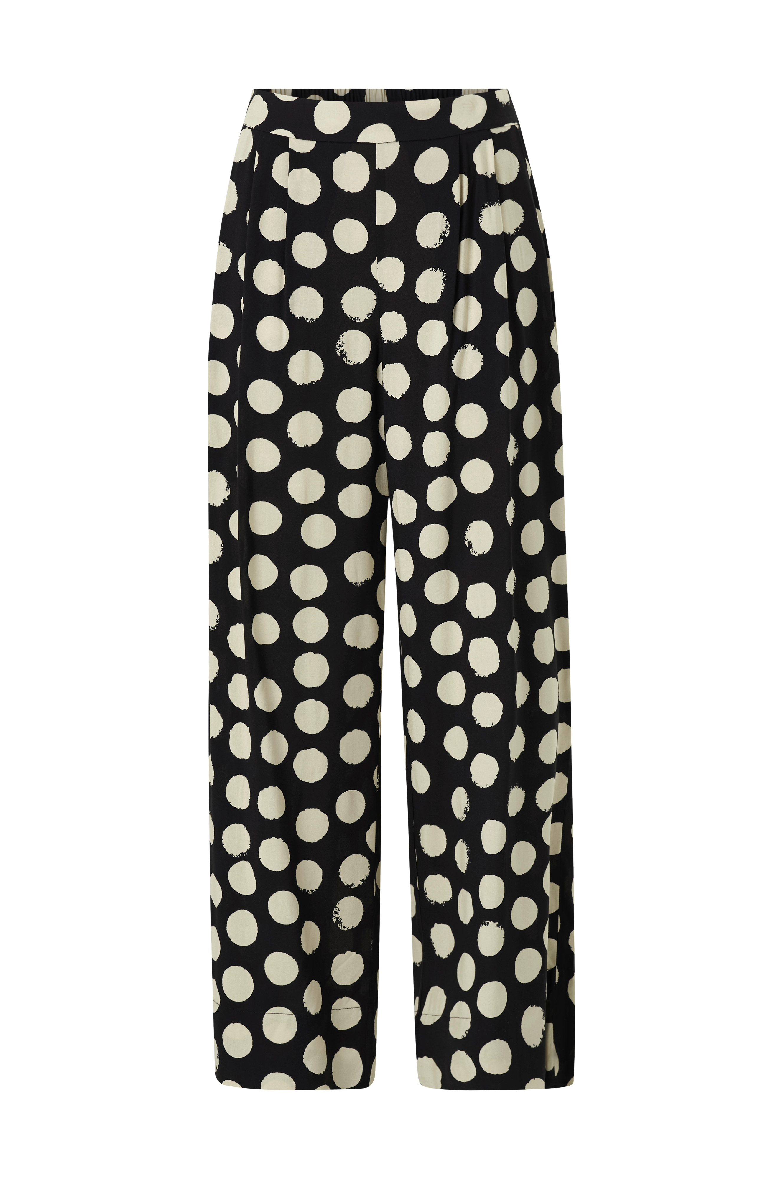 • Model i blød viskose med brede, lige ben• Høj talje• Påsyet linning med elastik bagpå• Indlagte sidelommer• Indre benlængde: 74 cm i størrelse M