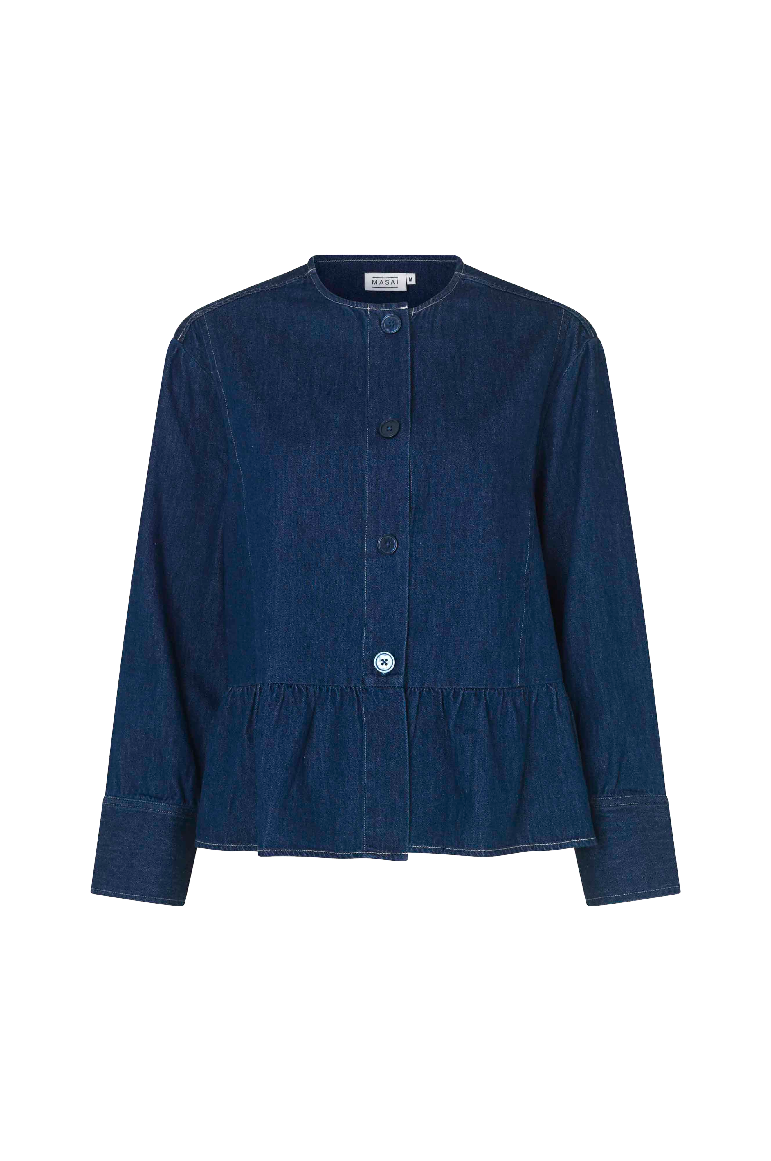 • Cowboyjakke i bomuldsdenim• Rund hals• Peplumdesign med volant nederst• To knapper ved manchetterne• Store størrelser• Længde: 59 cm i størrelse M