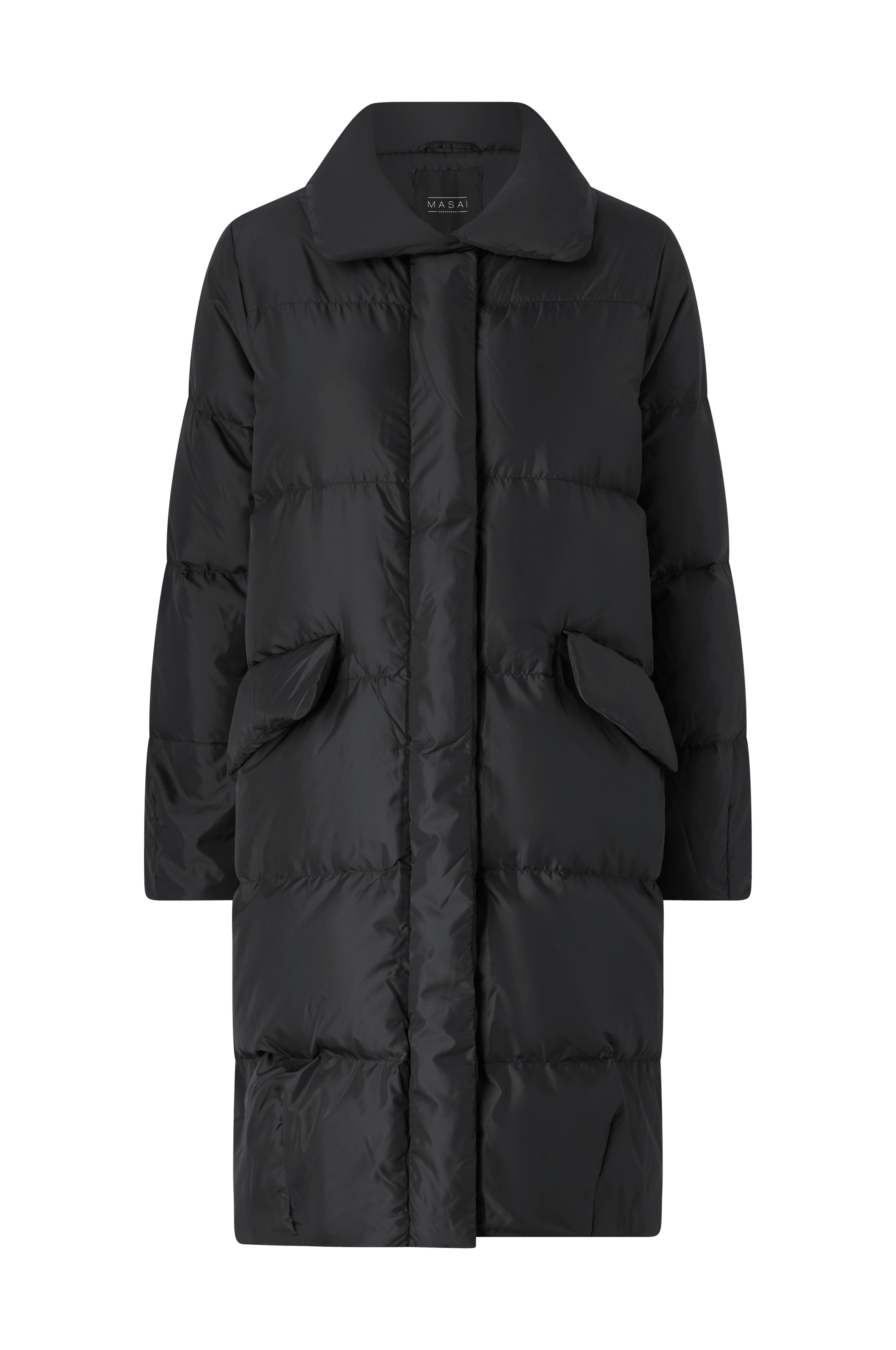 • Foret, quiltet frakke• Høj opretstående krave• Tovejslynlås• Beskyttende vindflap over lynlåsen• Ribmanchetter ved manchetterne• Forlommer med låg og indvendigt fleece for• Tekstilforing• Længde: 100 cm i størrelse XS