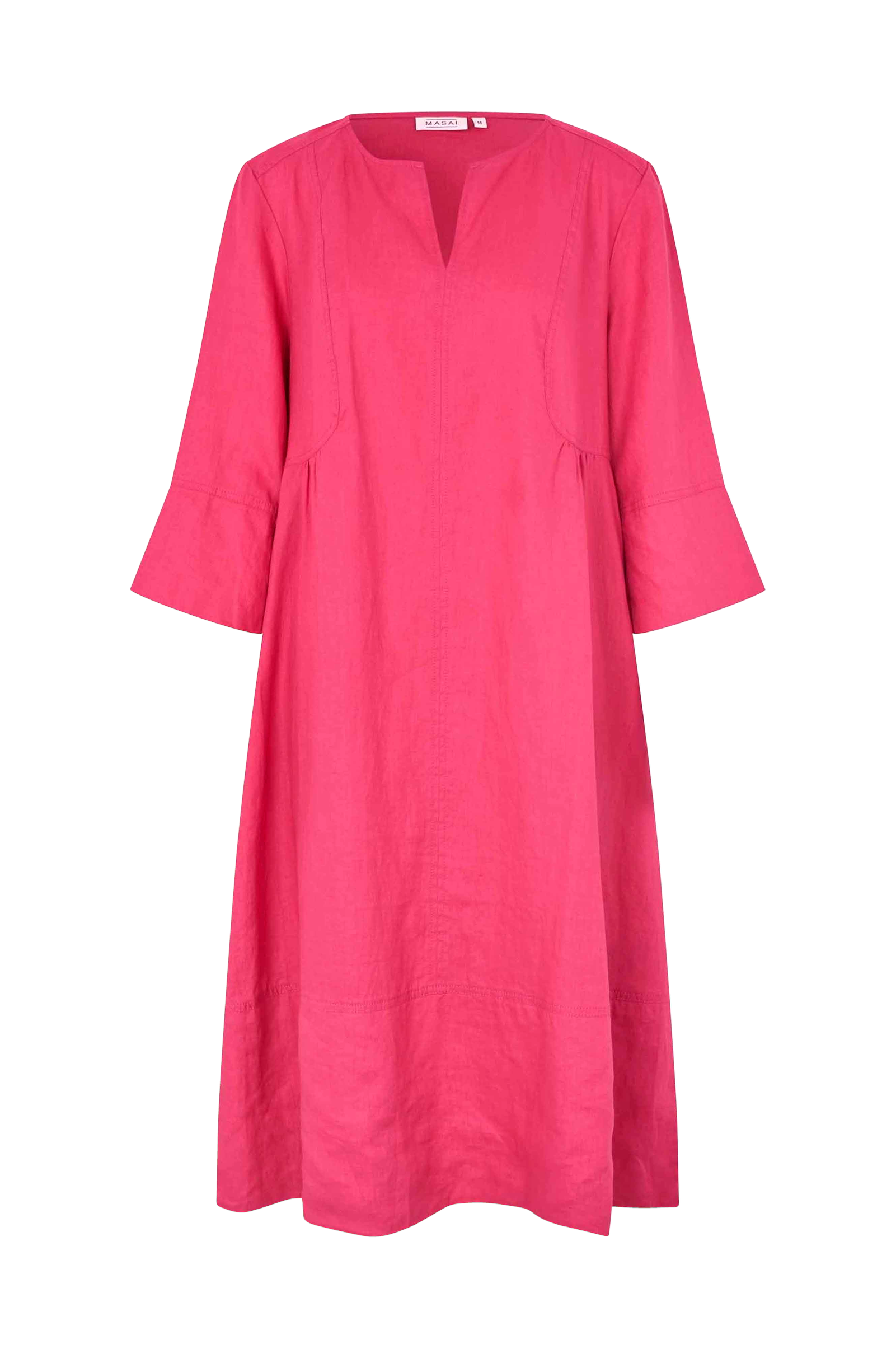 • Midikjole i hør• V-udskæring• 3/4 lange ærmer• Samling ved brystet og i ryggen• Lommer i siderne• Slidser i siderne• Længde: 108 cm i størrelse S