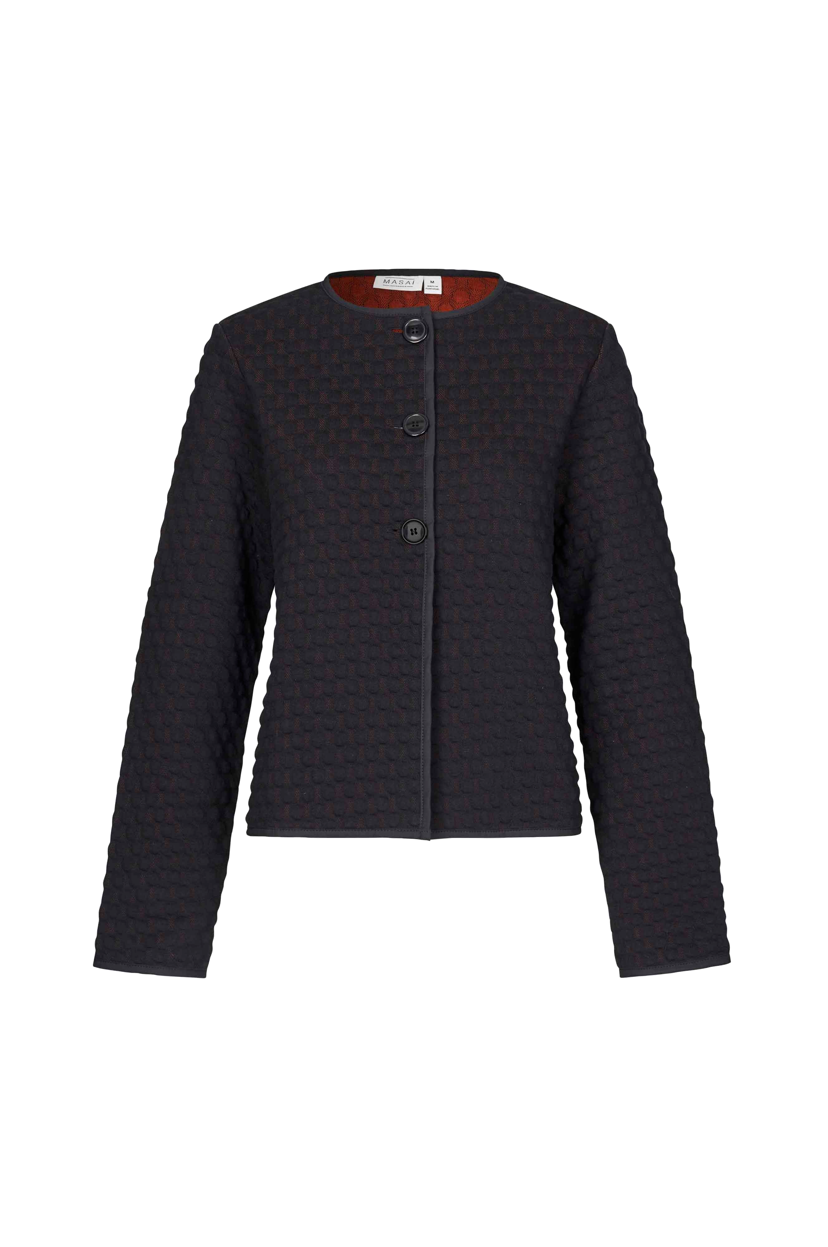 • Lige, mønstervævet model• Rund hals• Tre store knapper oppe foran• Ekstra langt ærme• Længde: 57 cm i størrelse M